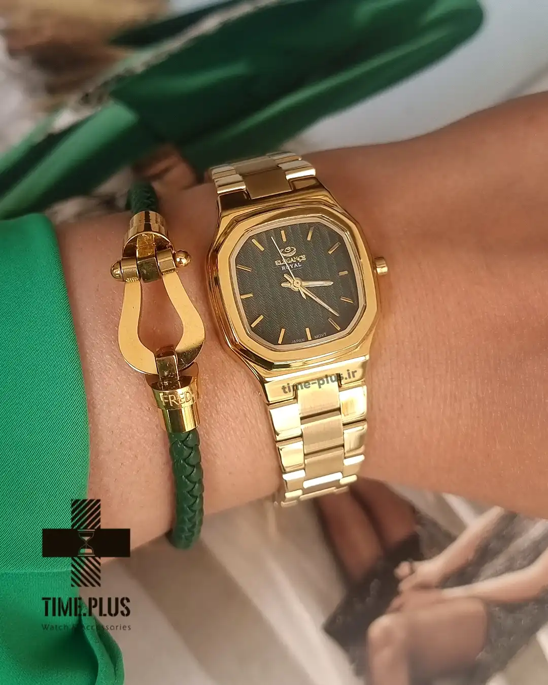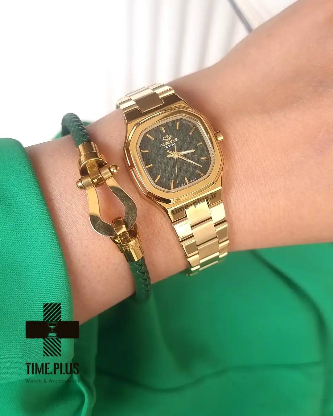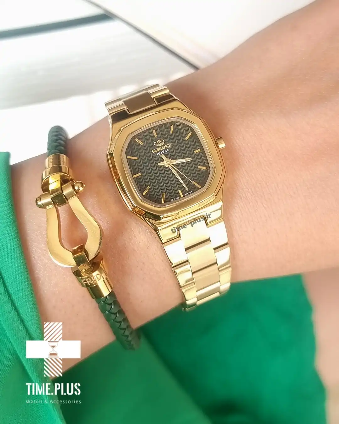 ساعت مچی زنانه الگانس طلایی مناسب بانوانی است که به ساعتهای با بند فلزی علاقهمندند و طراحی زیبا و خاصی دارد.