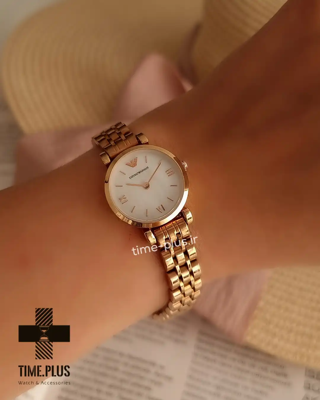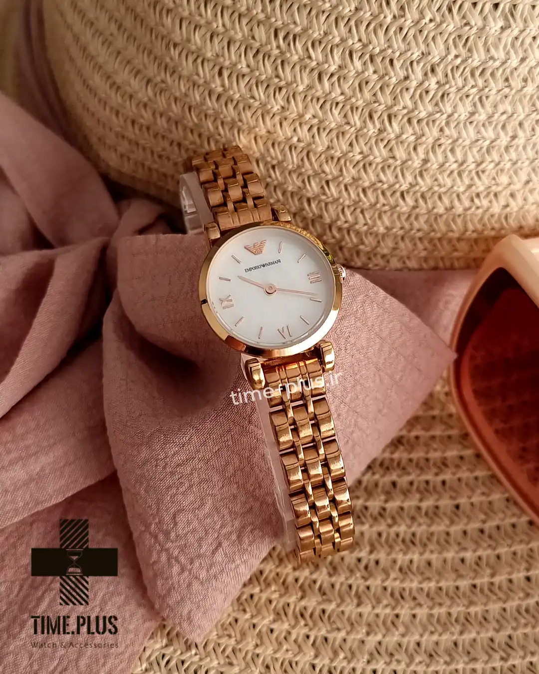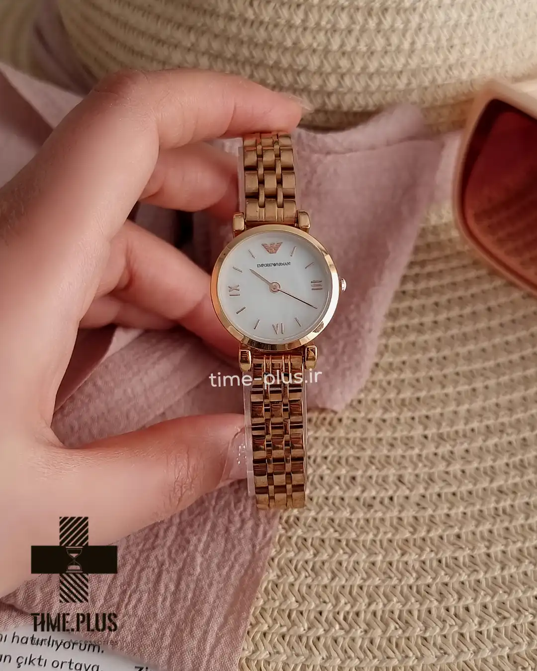 ساعت مچی زنانه امپریو آرمانی ساعت مچی زنانه امپریو آرمانی مدل رزگلد، ترکیبی از جذابیت و کیفیت است که مناسب هر مناسبتی میباشد.