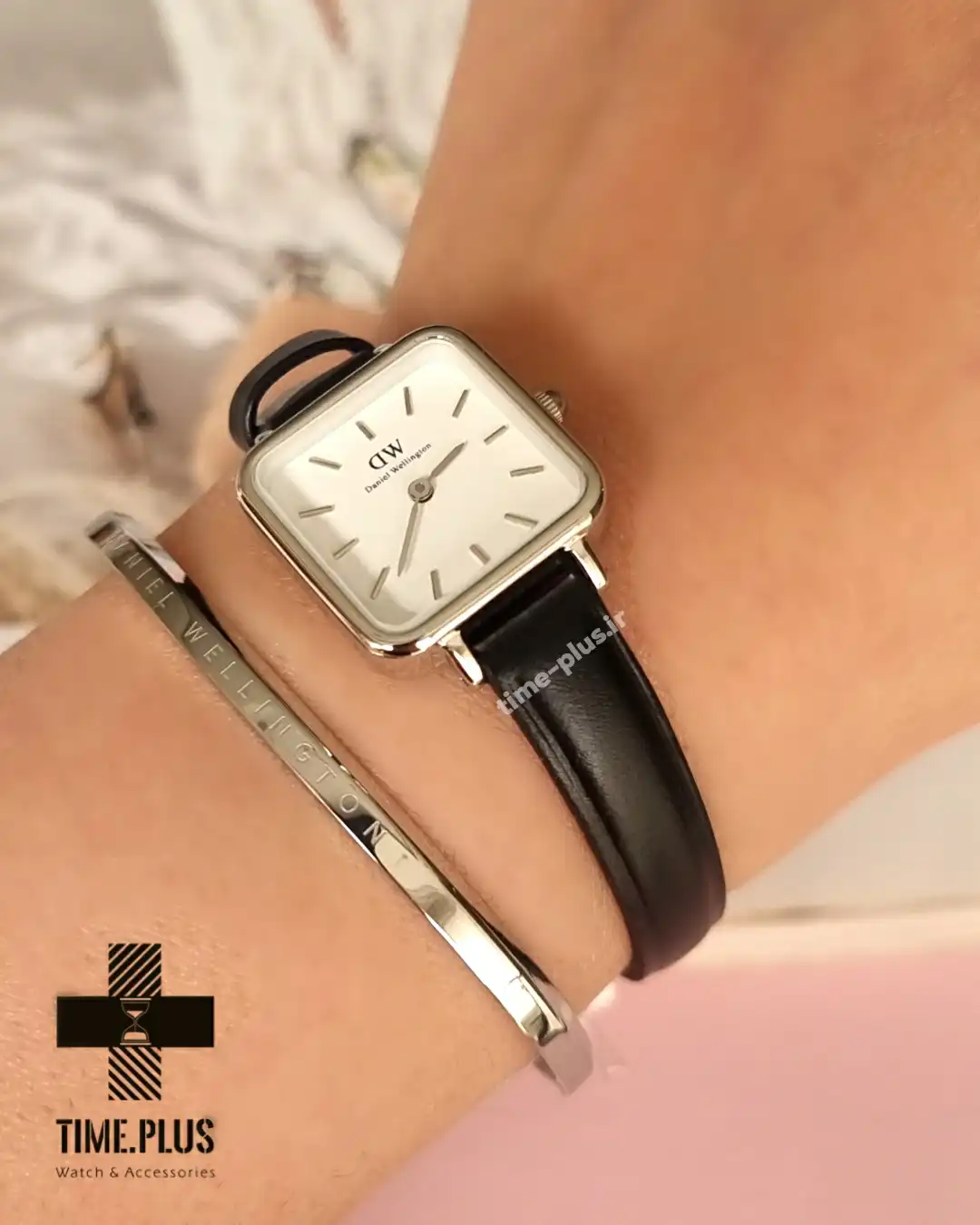 ساعت دنیل ولینگتون با طراحی مربعی و بند چرمی، گزینهای مناسب برای استایلهای رسمی و روزمره است.