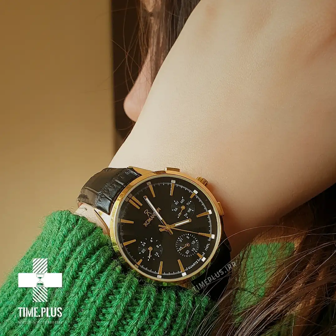 ساعت زنانه رومانسون با طراحی گرد و عقربههای تیز، قدرت و جذابیت را به نمایش میگذارد.