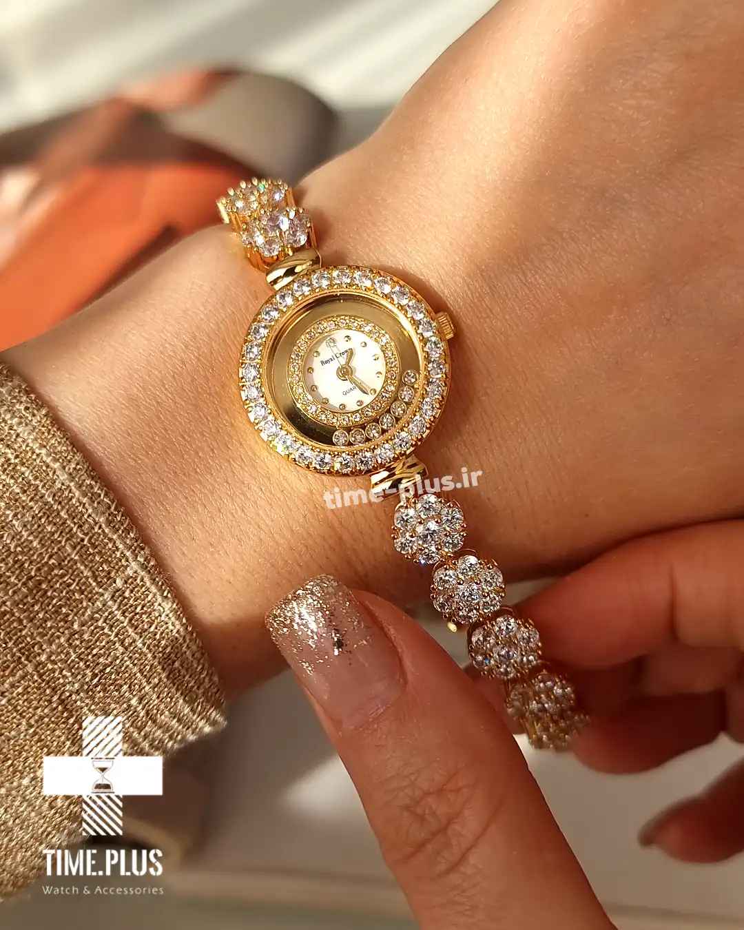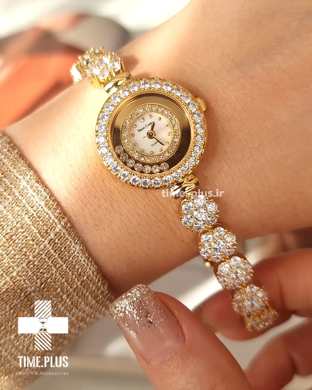 ساعت زنانه رویال کرون با طراحی جذاب و نگین کاری، زیبایی و زرق و برق خاصی به استایل شما میبخشد و گزینهای مناسب برای مراسمهای ویژه است.