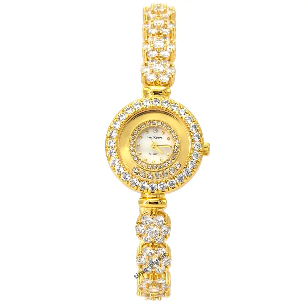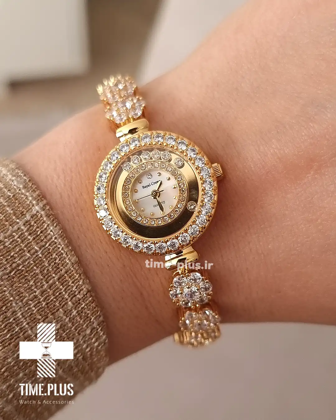 ساعت مچی زنانه رویال کرون ساعت زنانه رویال کرون با طراحی جذاب و نگین کاری، زیبایی و زرق و برق خاصی به استایل شما میبخشد و گزینهای مناسب برای مراسمهای ویژه است.