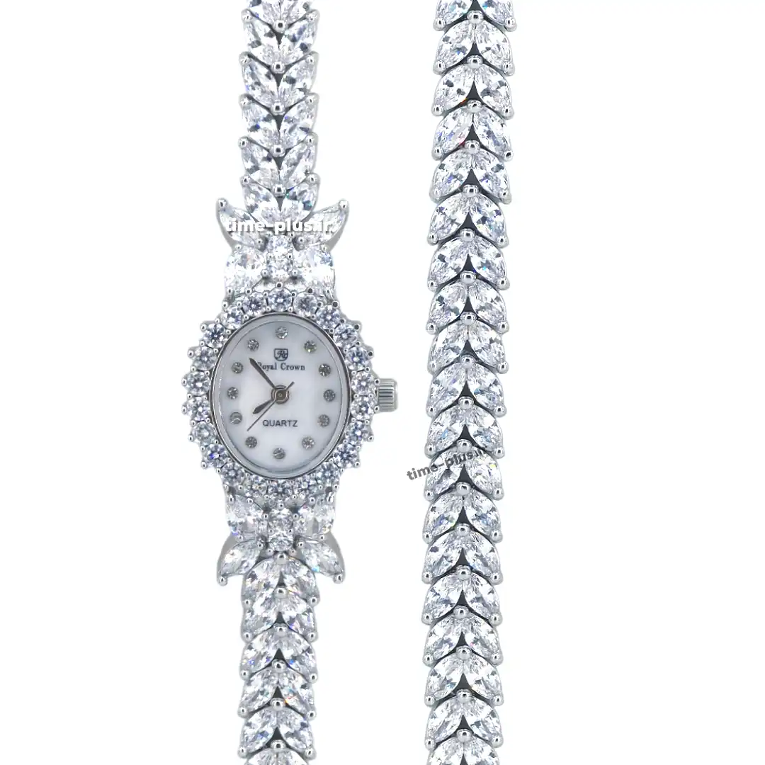 ساعت مچی زنانه رویال کرون ساعت Royal Crown زنانه با طراحی جذاب و نگیندار، گزینهای مناسب برای زیباتر کردن استایل شماست و به خصوص برای مراسمهای خاص مناسب میباشد.
