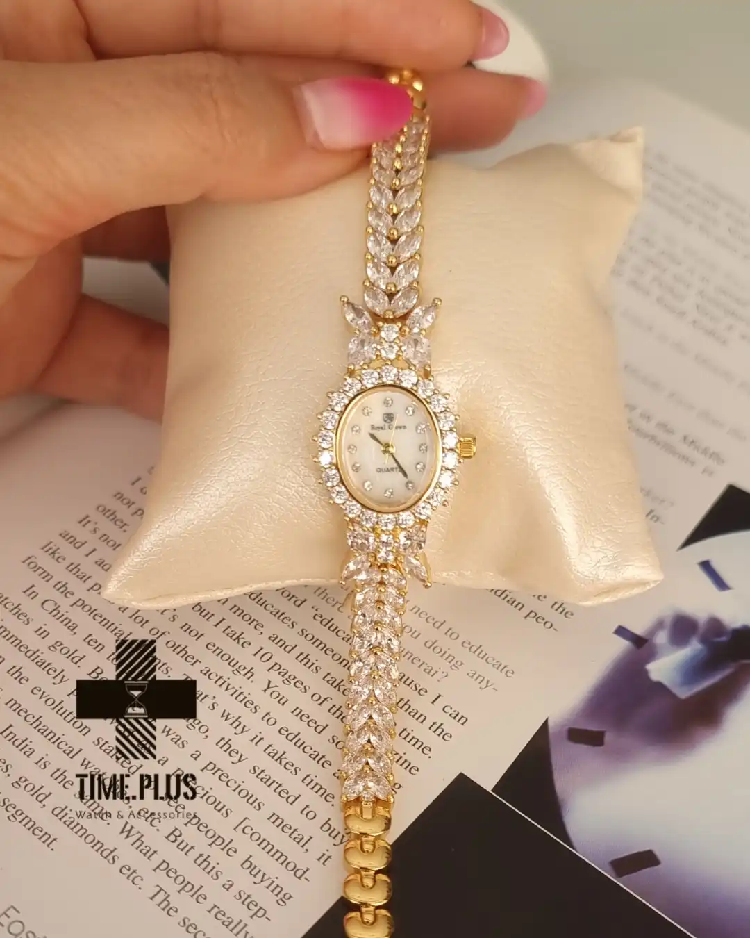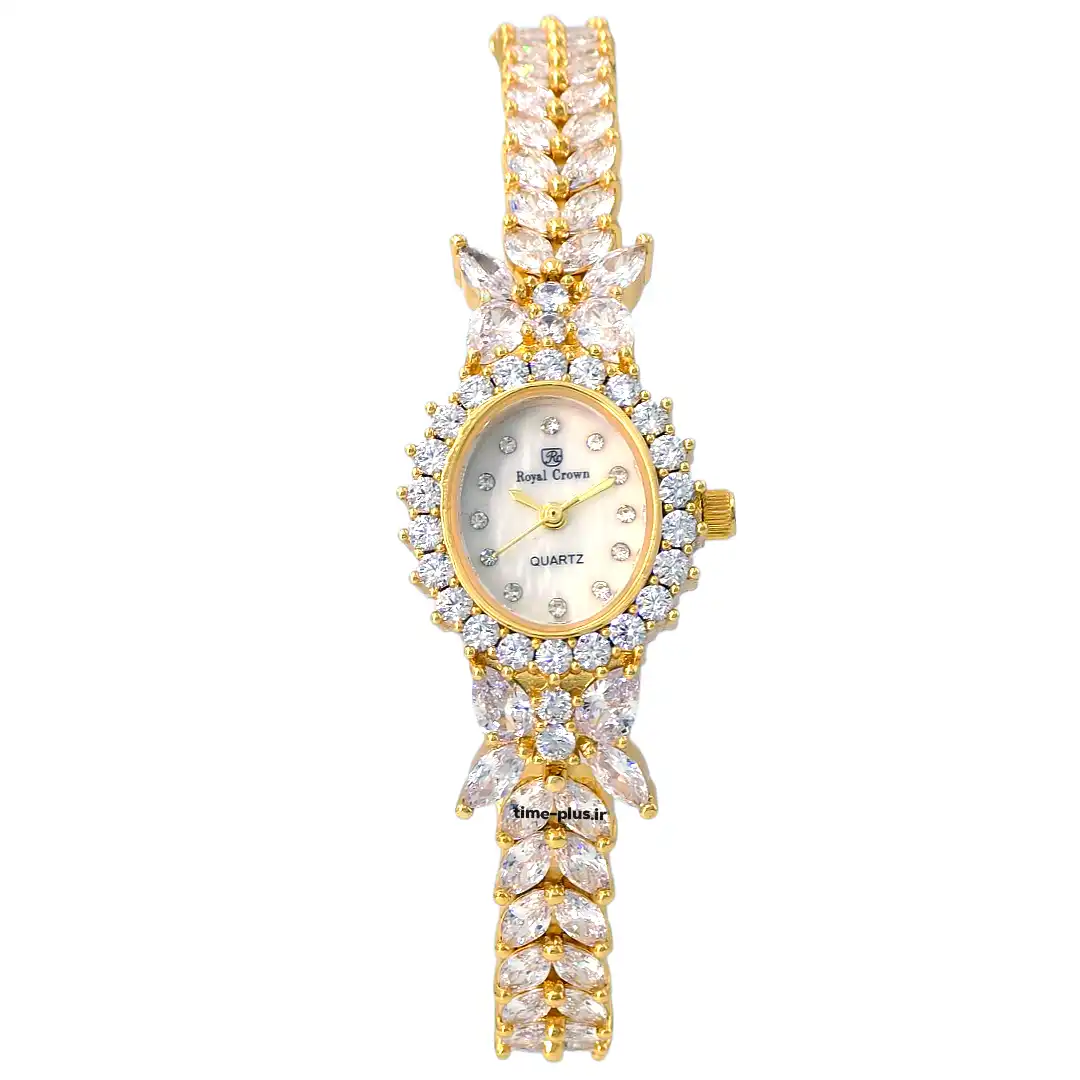 ساعت Royal Crown زنانه طلایی تک دور صفحه بیضی