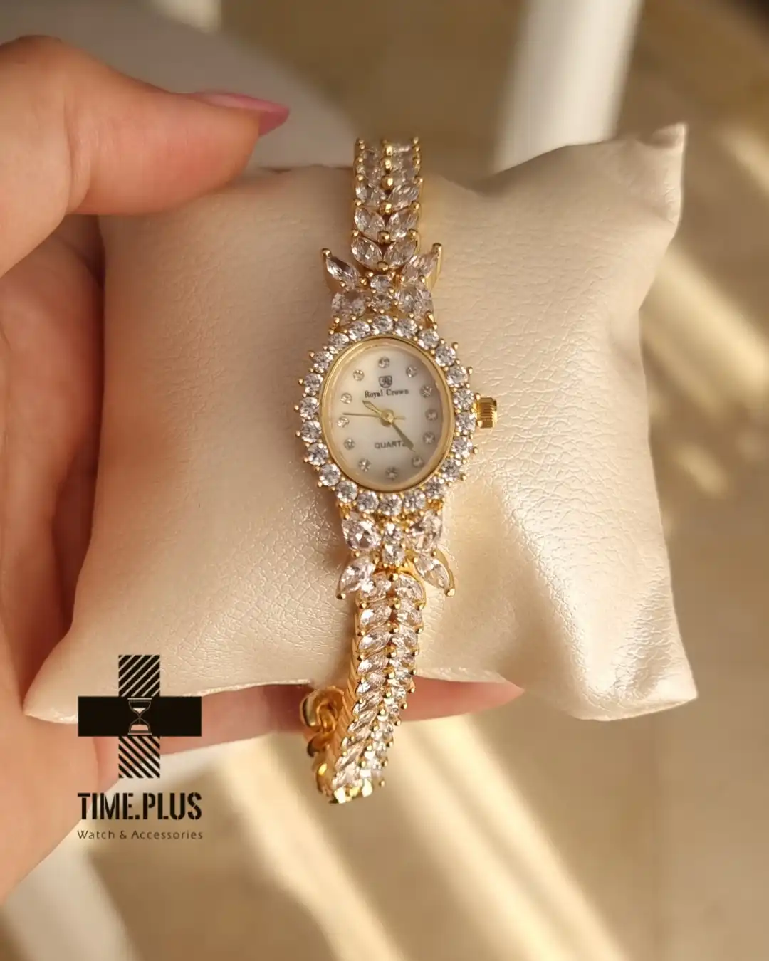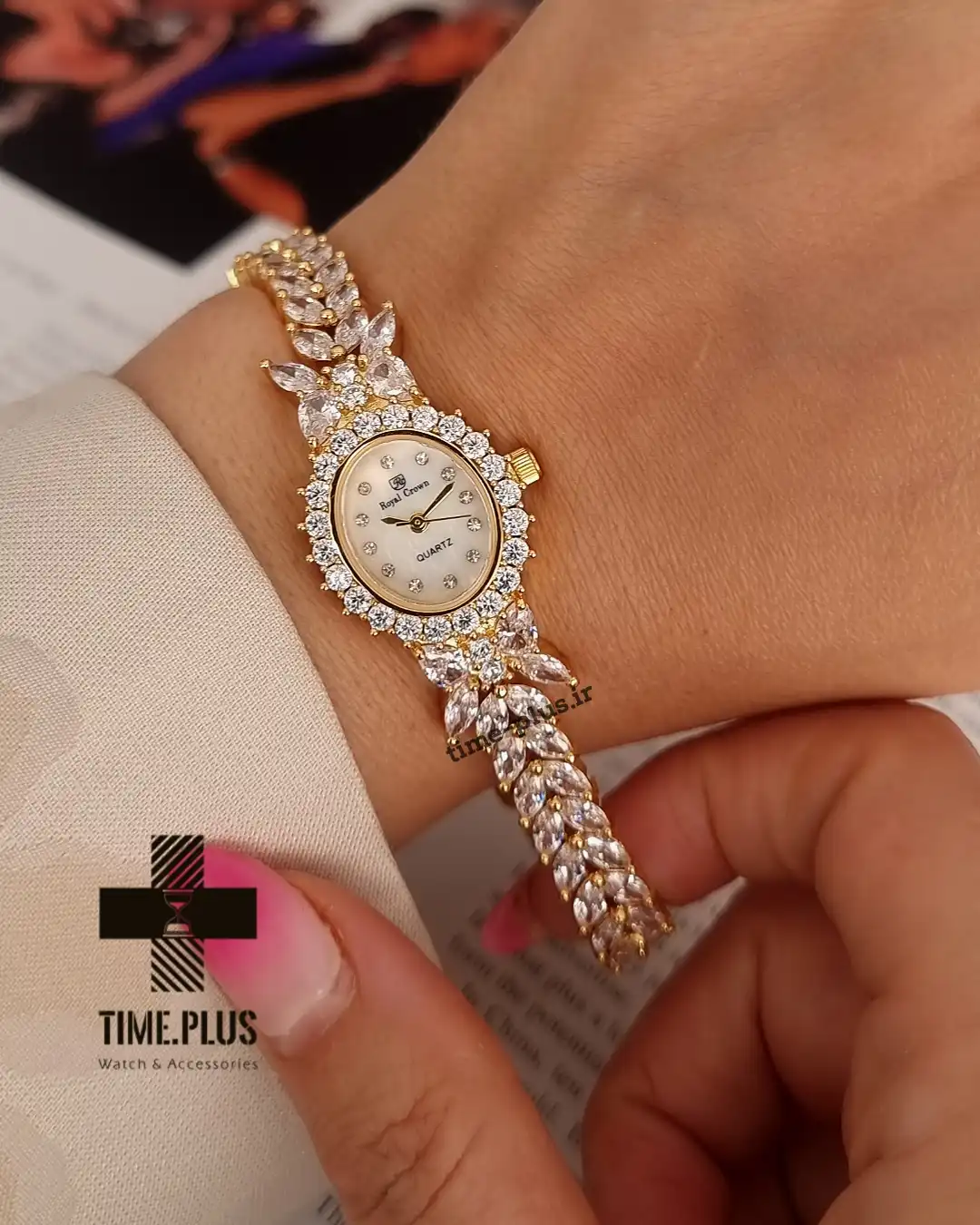ساعت زنانه طلایی Royal Crown با طراحی زیبا و منحصر به فرد، گزینهای ایدهآل برای افزودن زرق و برق به استایل شماست.