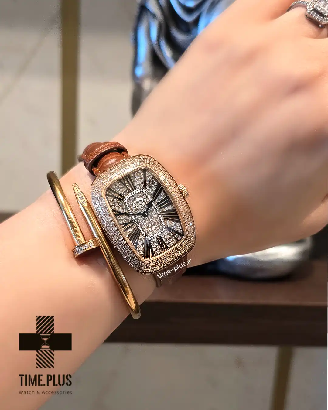 ساعت مچی زنانه فرانک مولر با طراحی زیبا و منحصر به فرد از برند سوئیسی فرانک مولر، تلفیق هنری و کیفیت را ارائه میدهد.