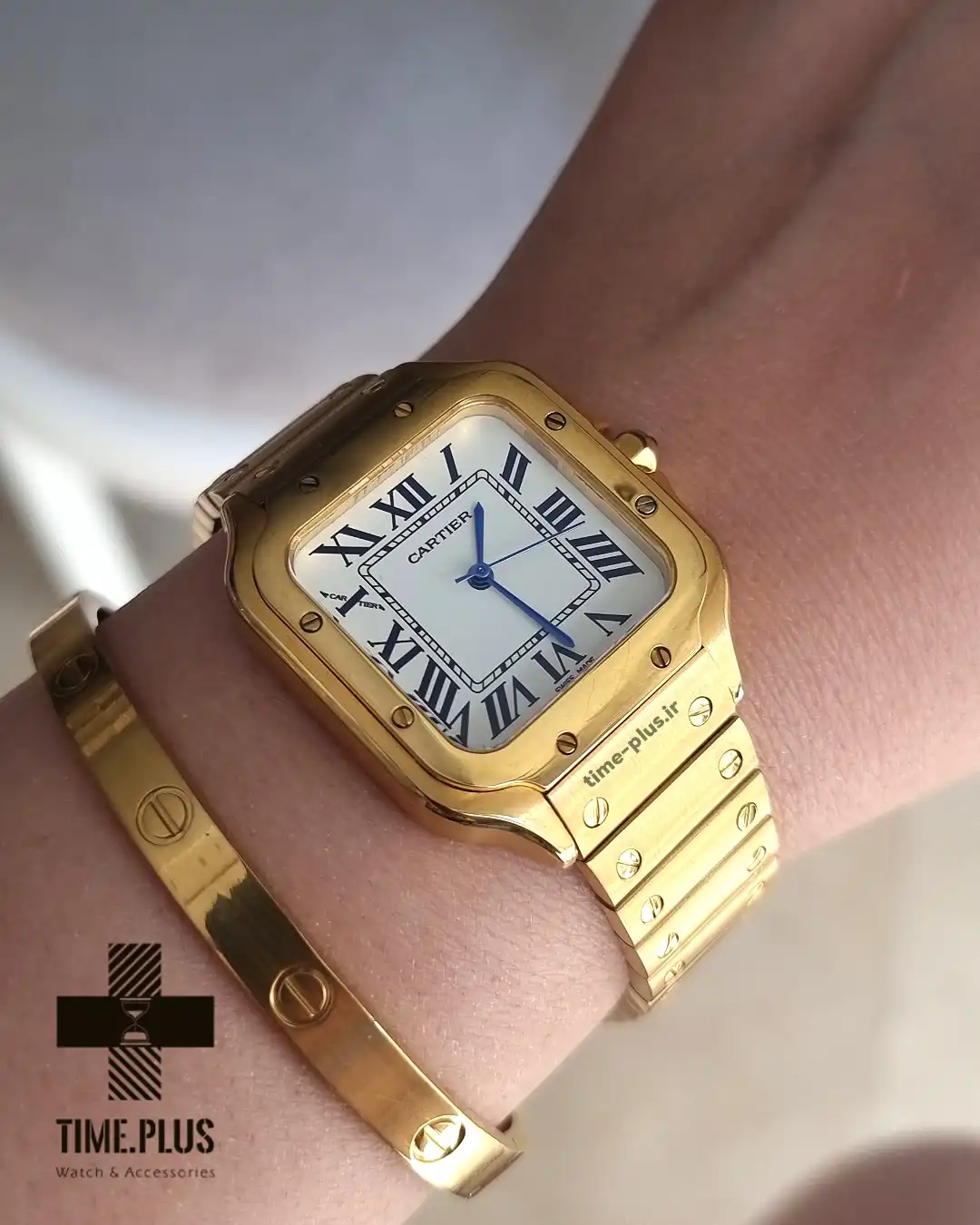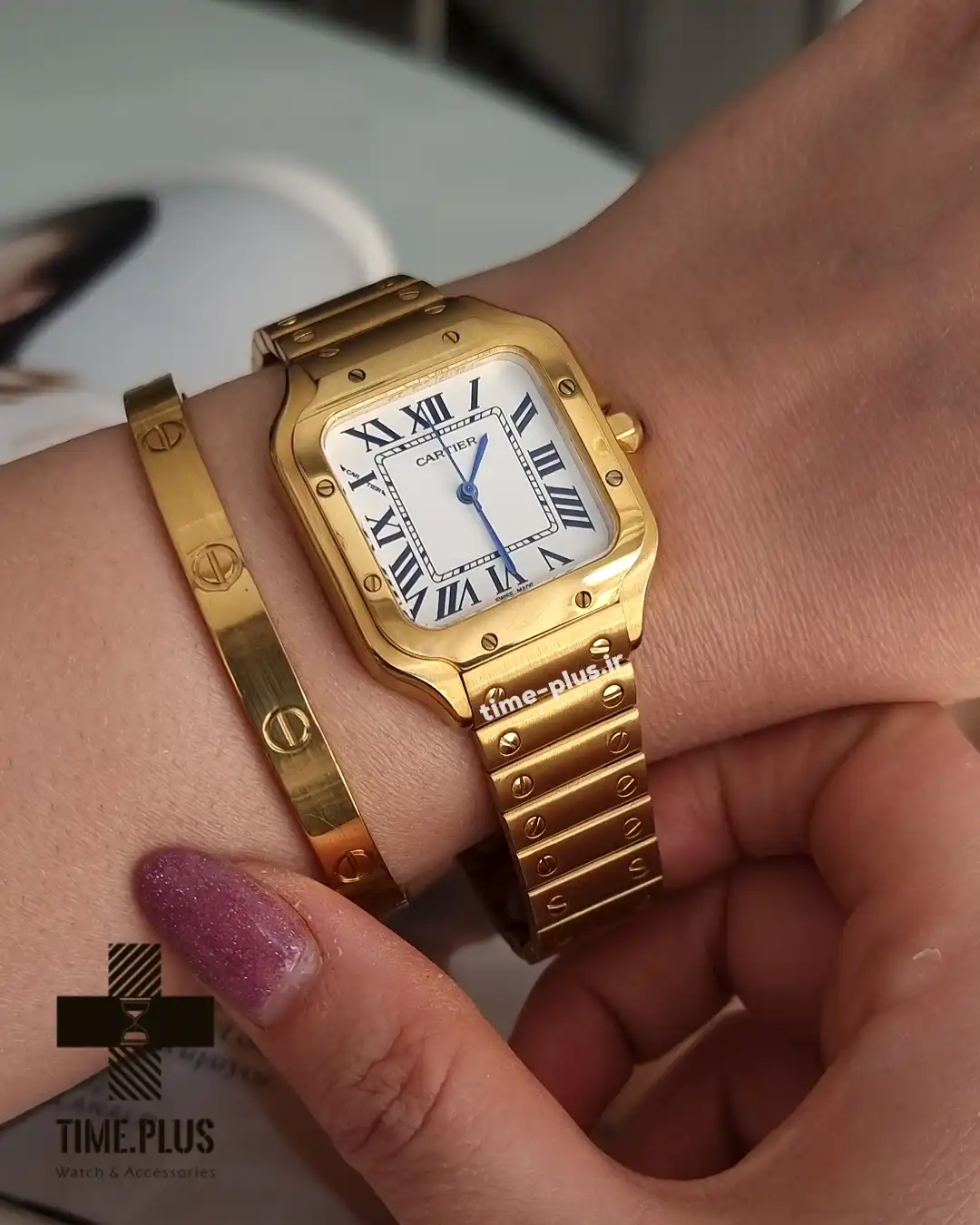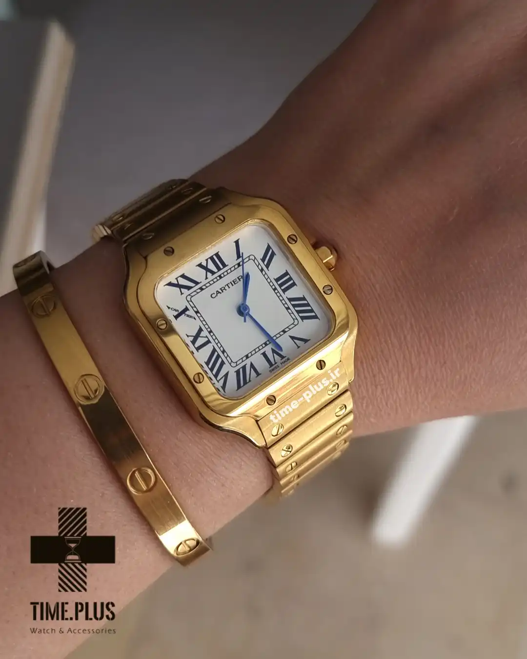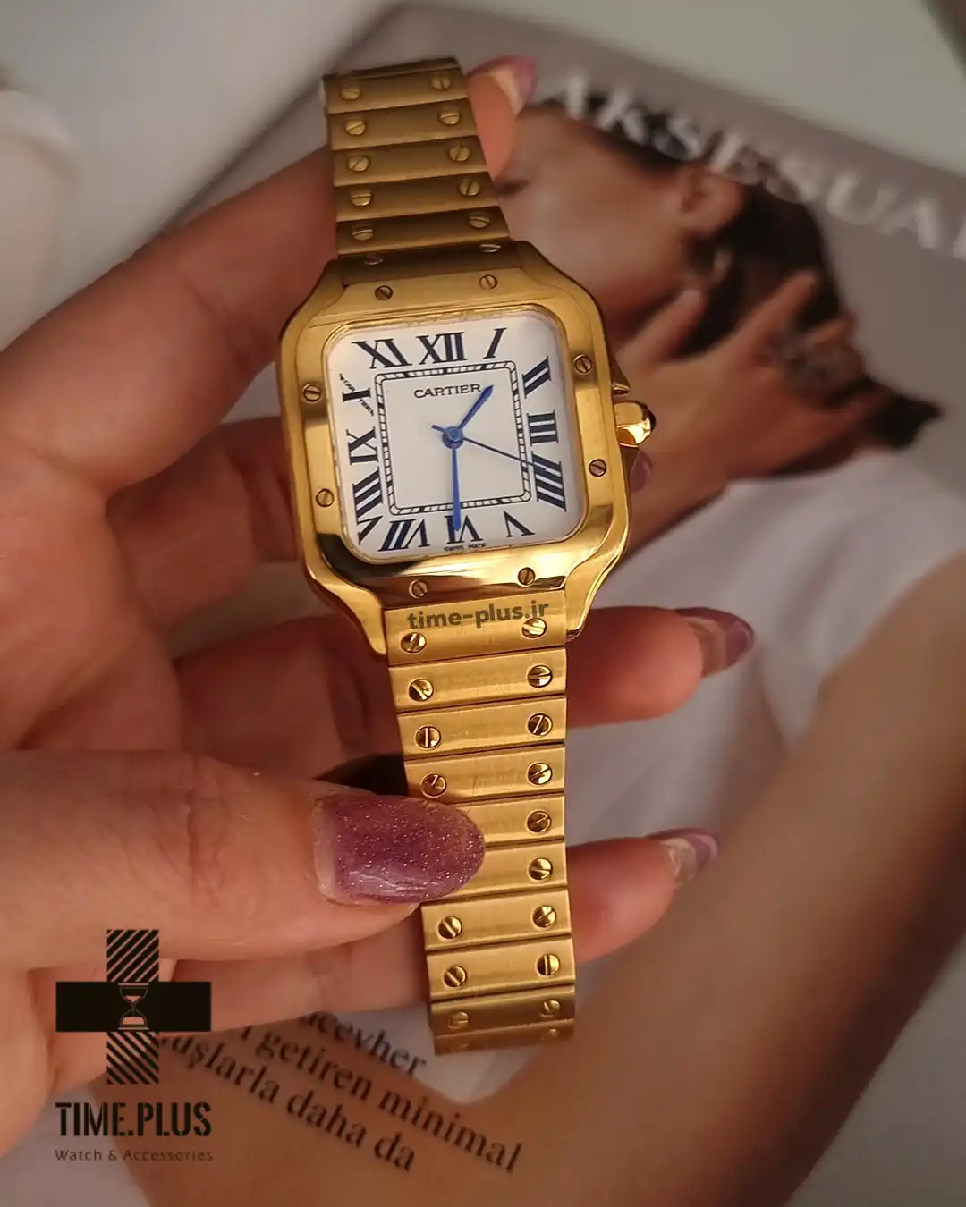ساعت کارتیه زنانه د سانتوس طلایی با طراحی منحصر به فرد و تاریخچهای غنی، انتخابی عالی برای نمایش استایل شماست.