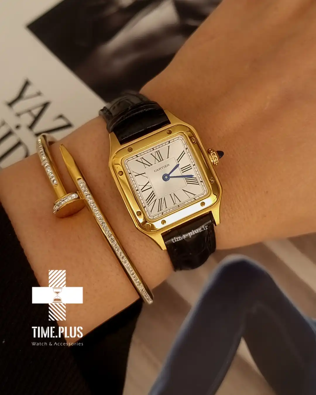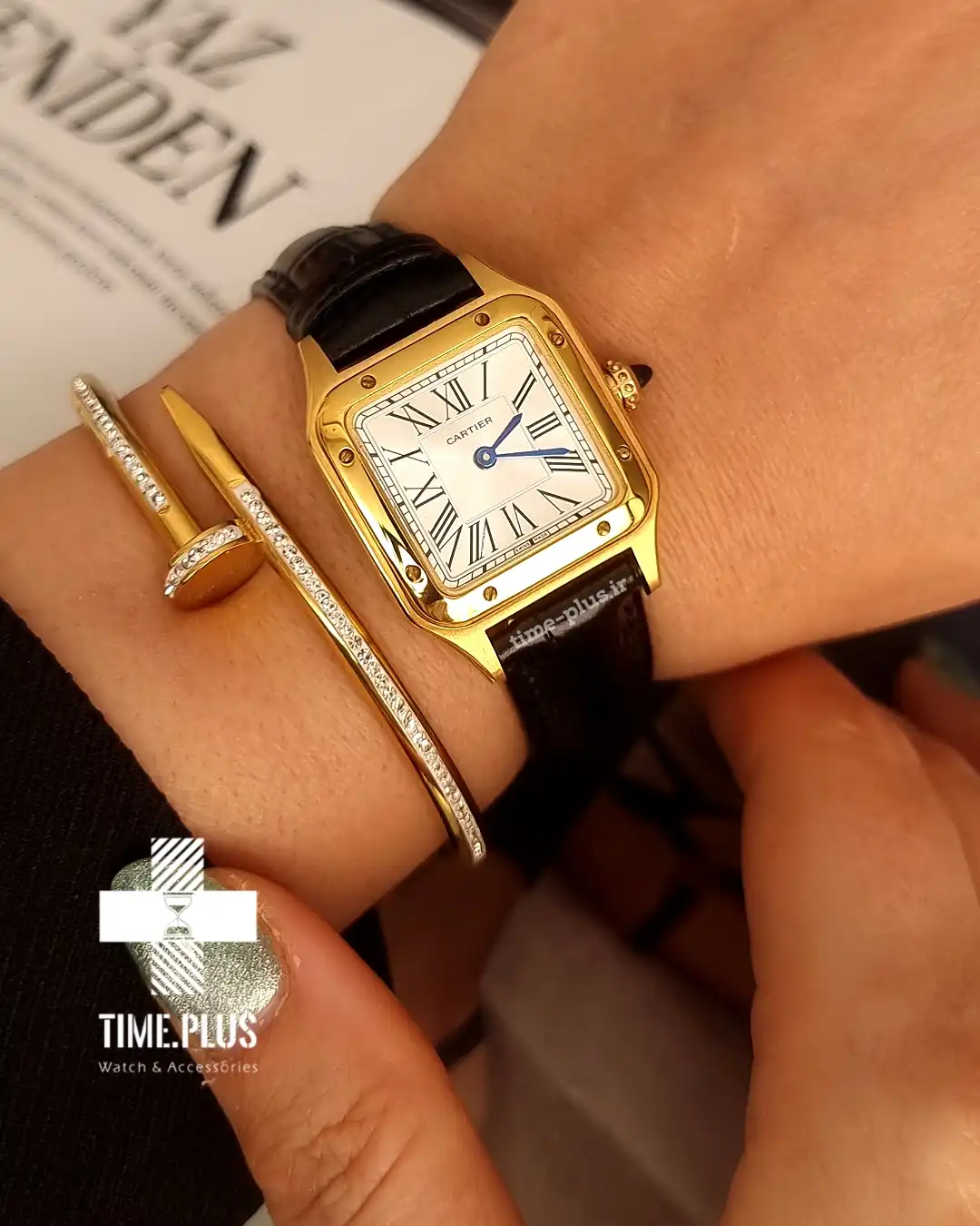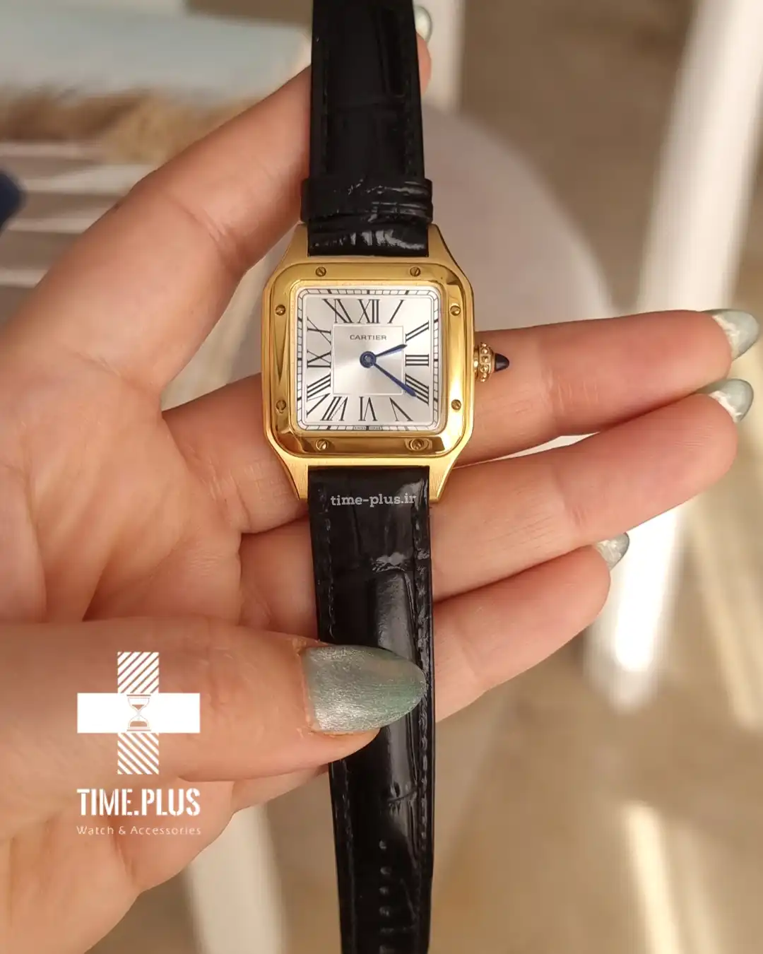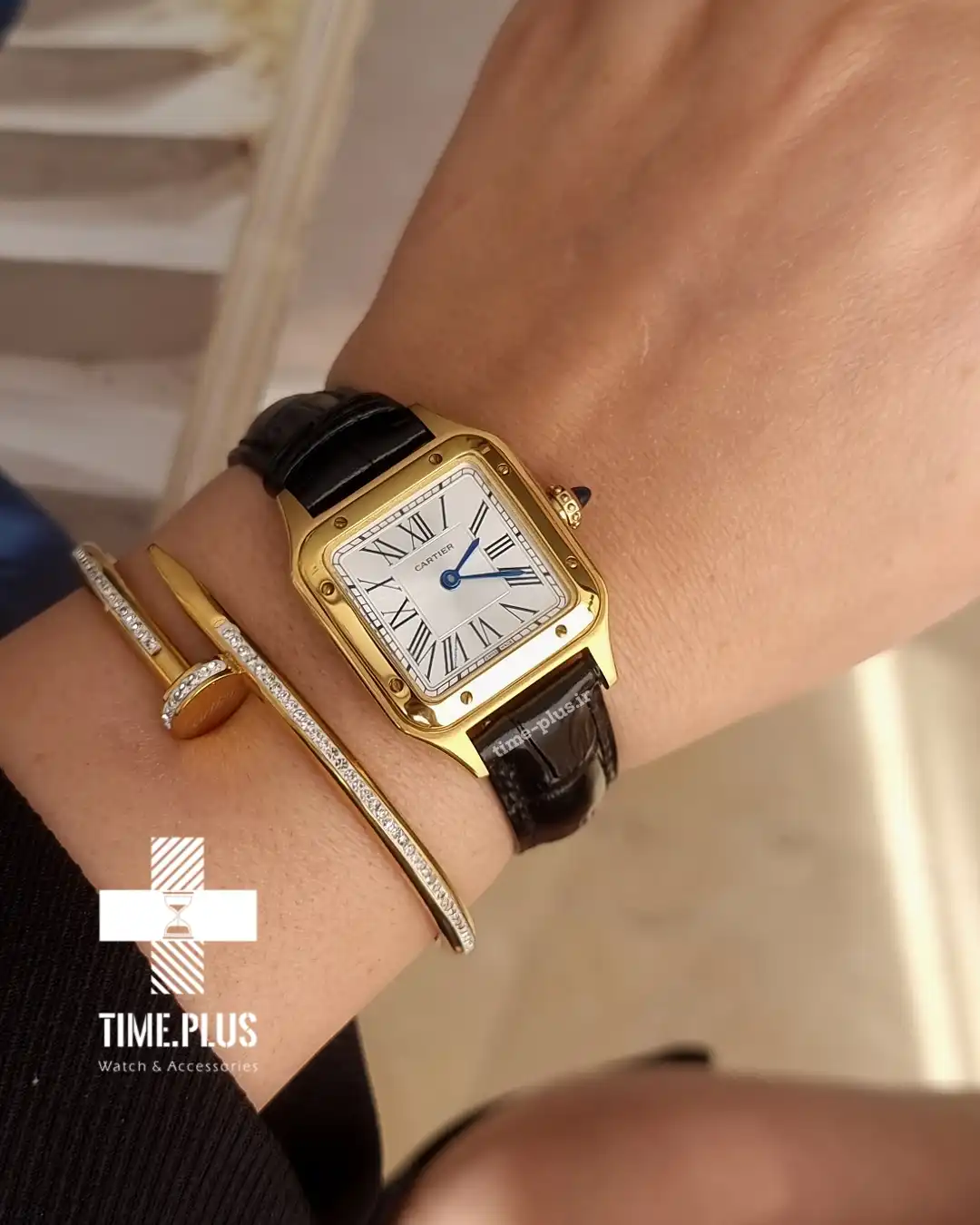 ساعت کارتیر زنانه سانتوس دومونت بند چرم مشکی