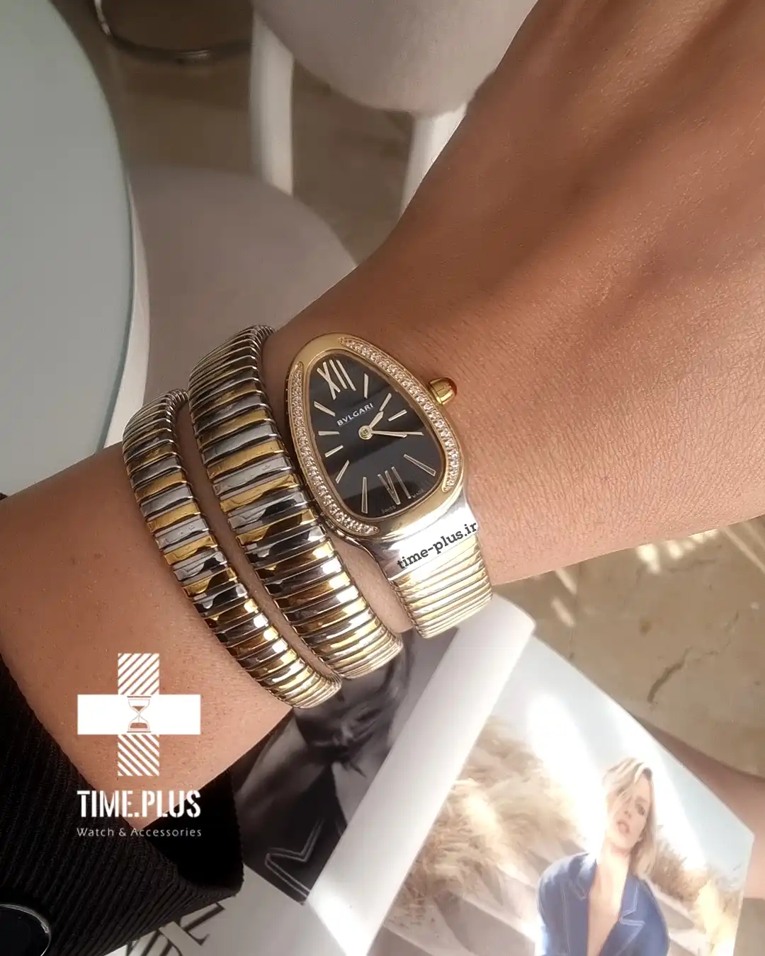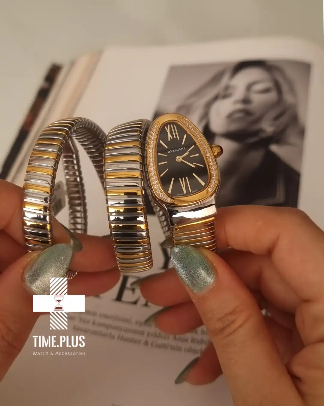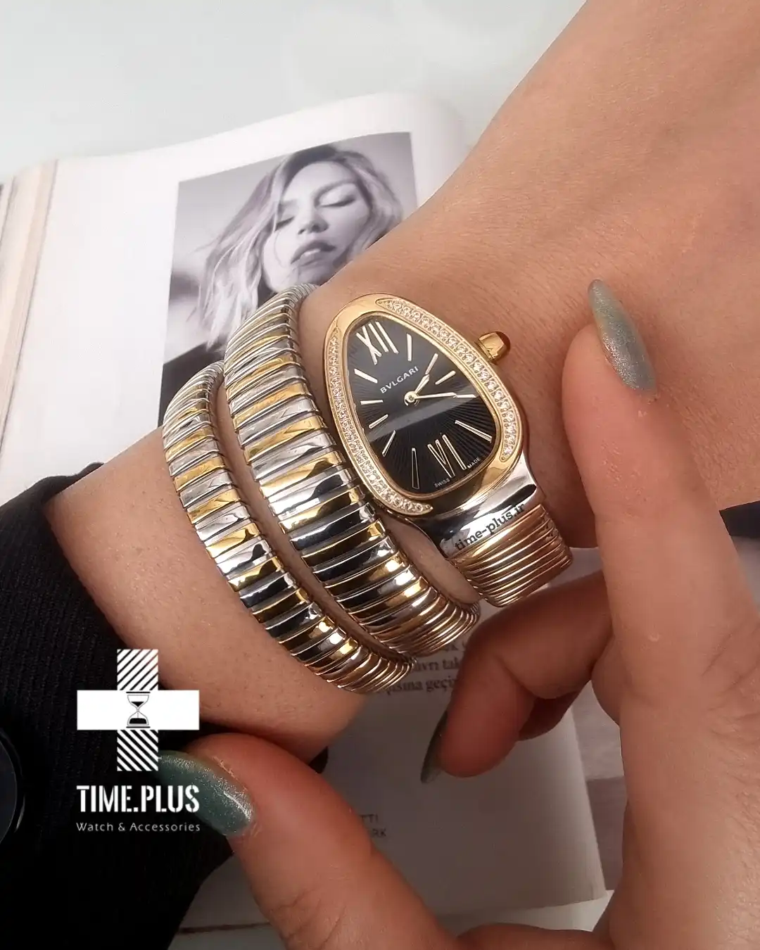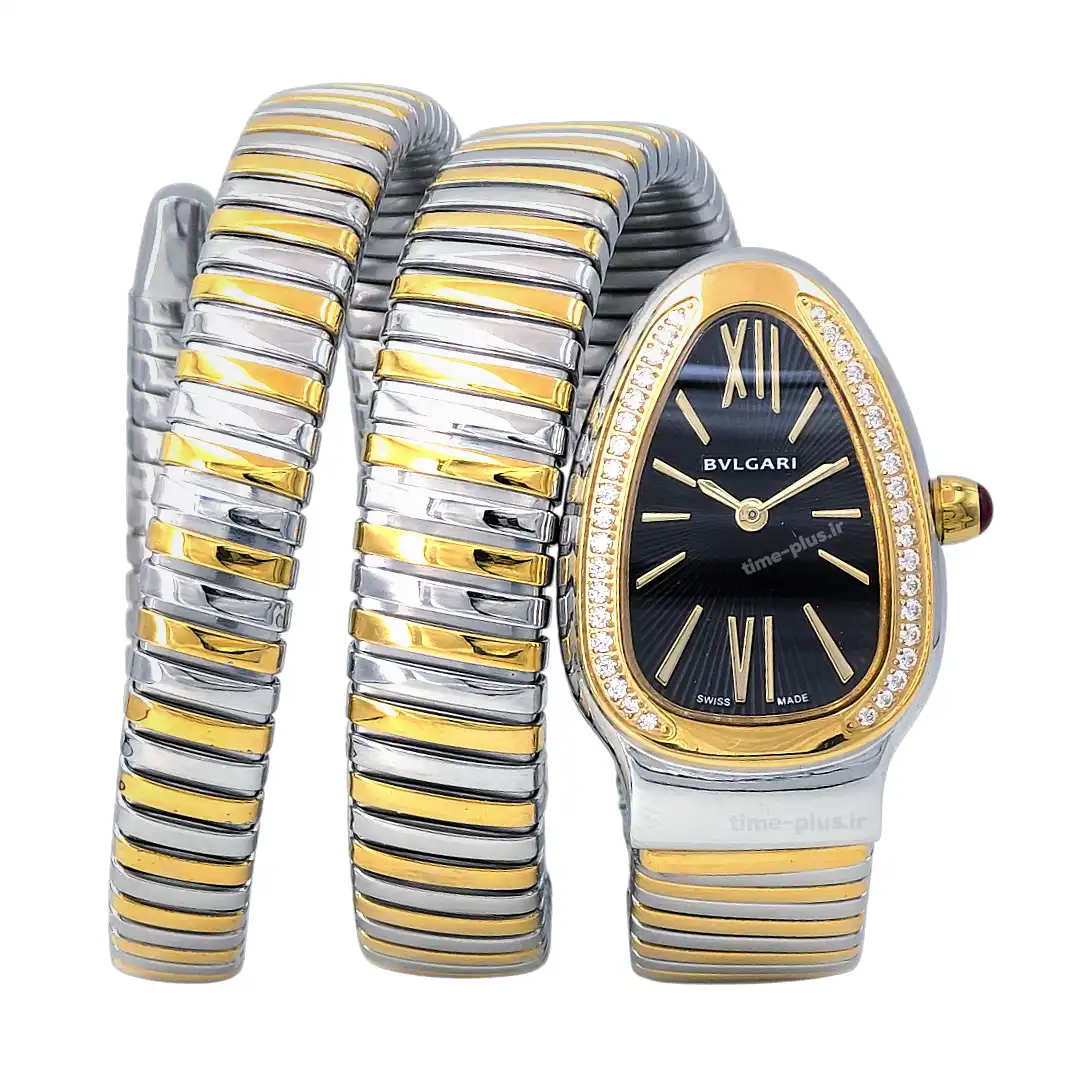 ساعت مچی زنانه بولگاری سرپنتی با طراحی الهامگرفته از مار، انتخابی باشکوه برای مهمانیهای رسمی و لباس شب است.