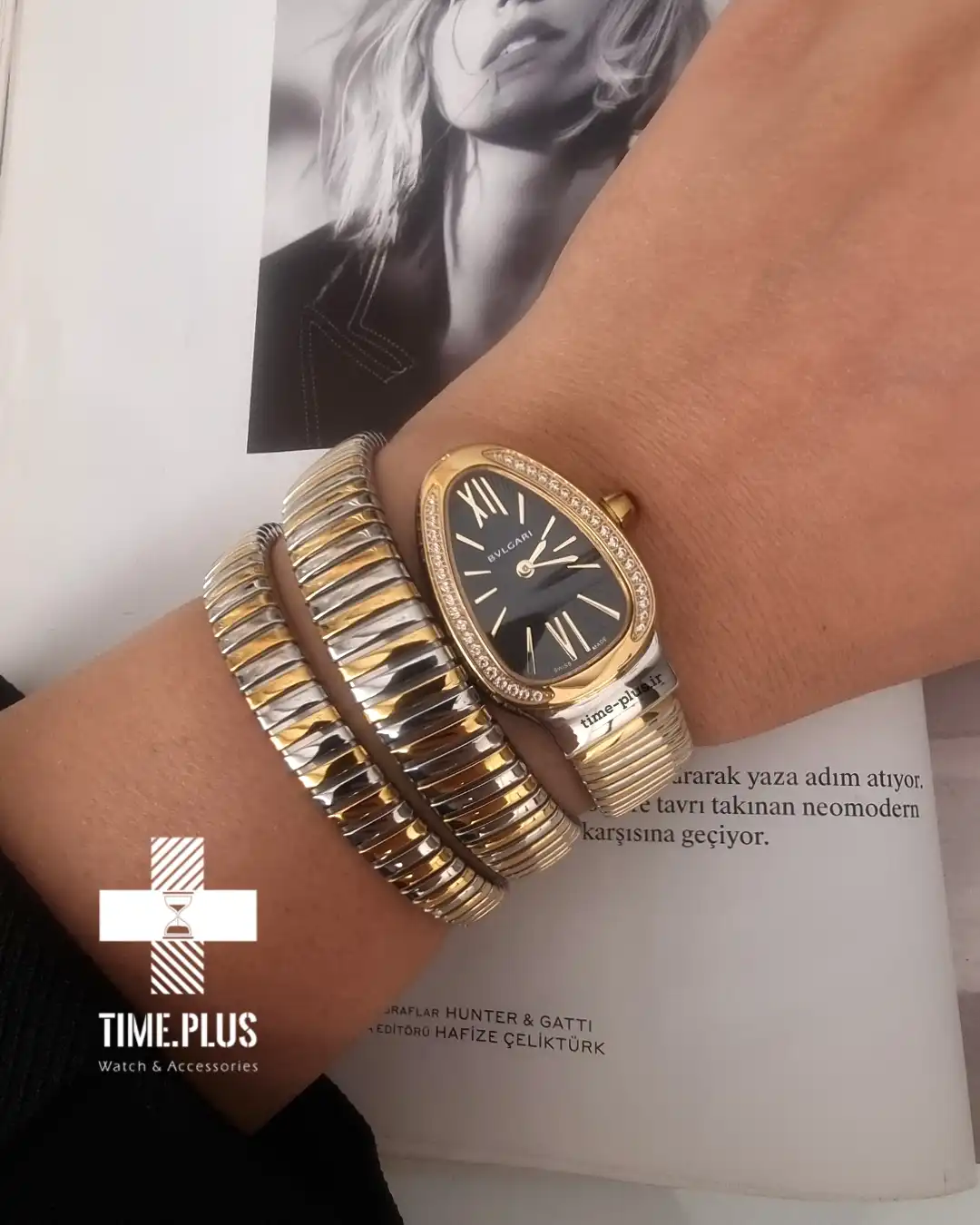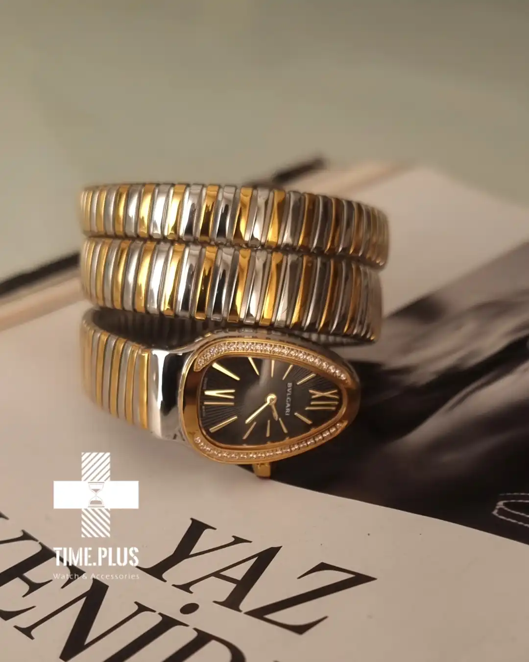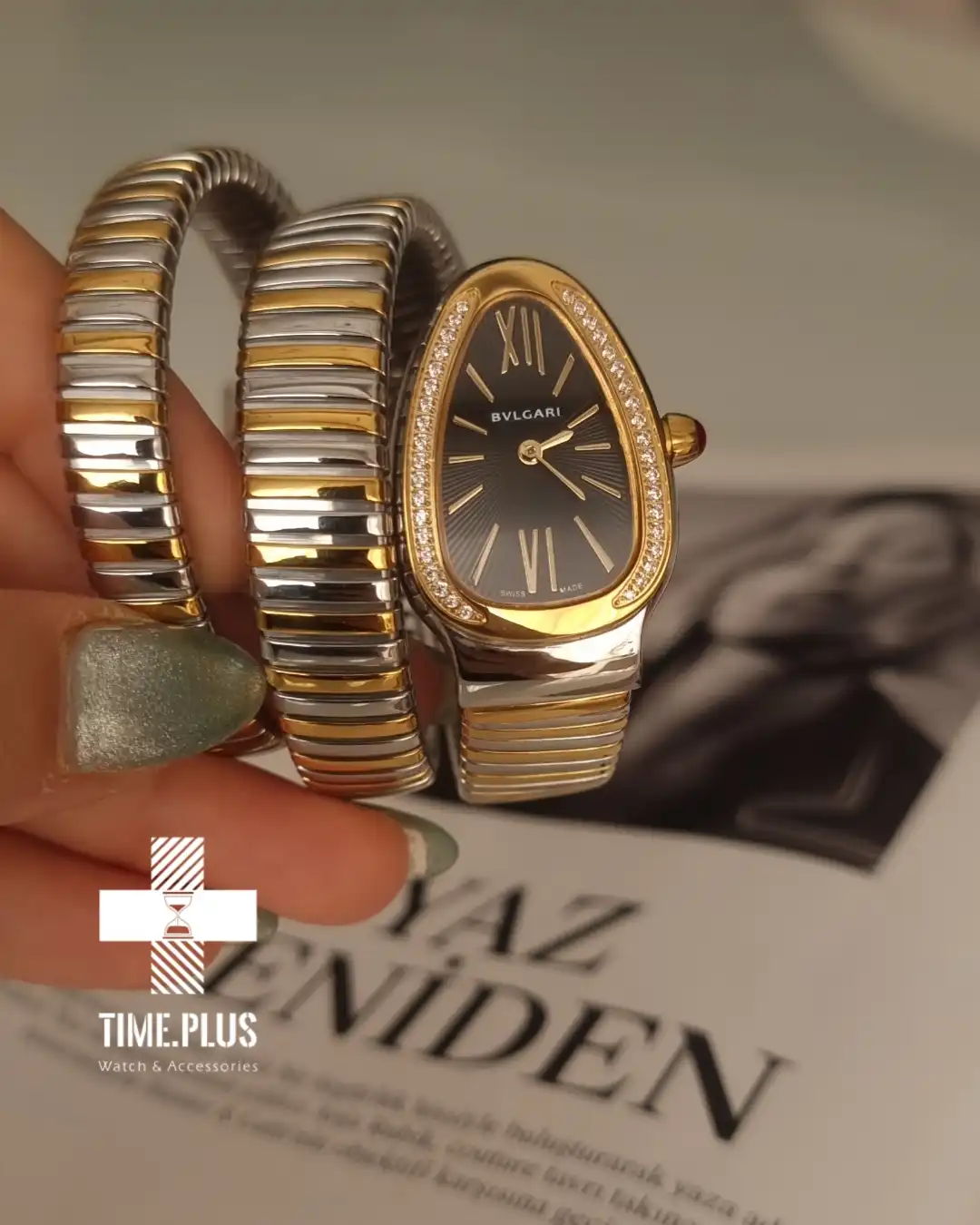 ساعت مچی زنانه بولگاری سرپنتی با طراحی الهامگرفته از مار، انتخابی باشکوه برای مهمانیهای رسمی و لباس شب است.