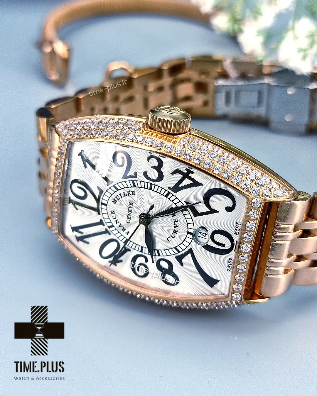 ساعت مچی زنانه Curvex فرانک مولر ساعت زنانه Curvex از برند فرانک مولر با طراحی زیبا و رنگ رزگلد، گزینهای مناسب برای استفاده روزمره و مهمانیها است.