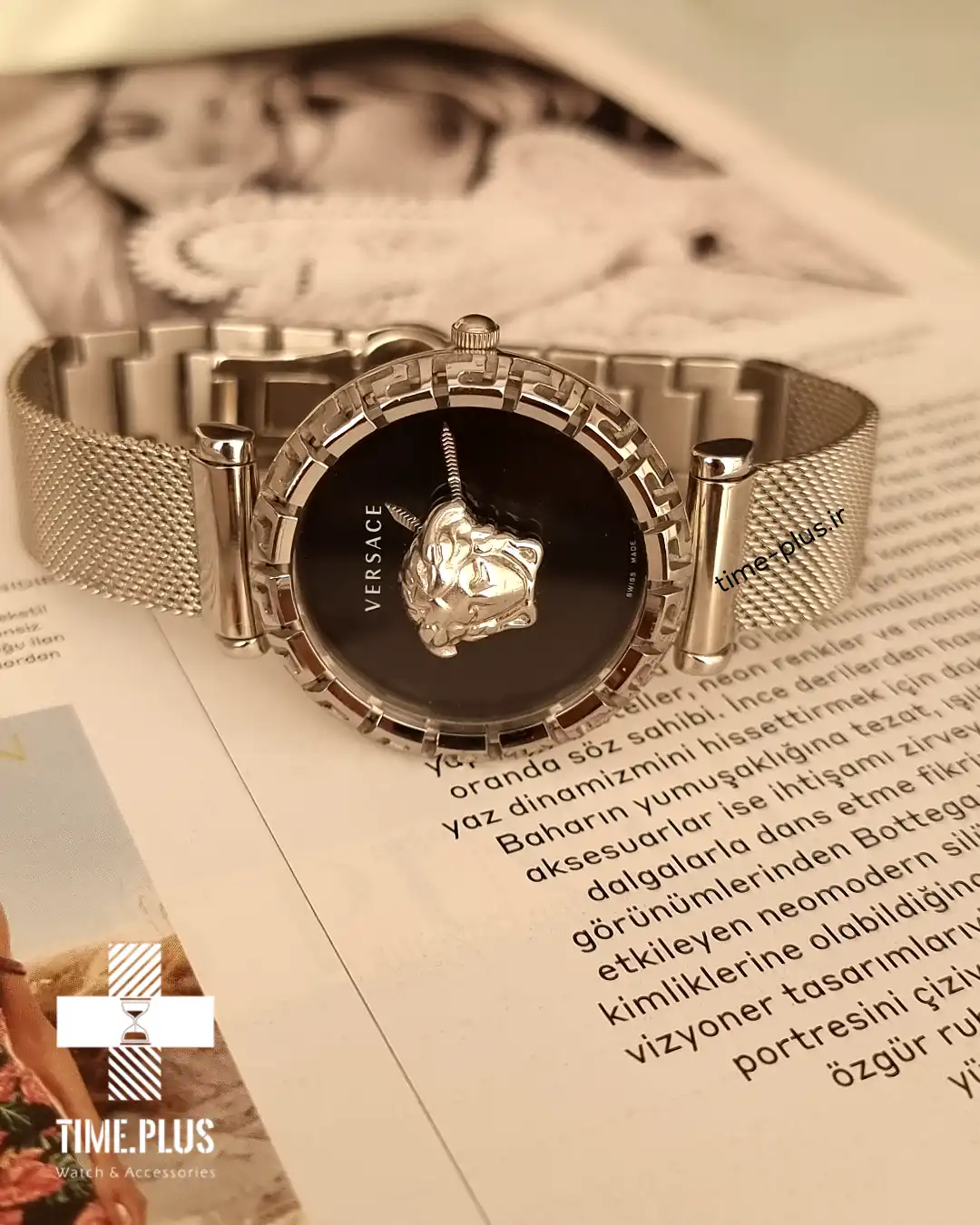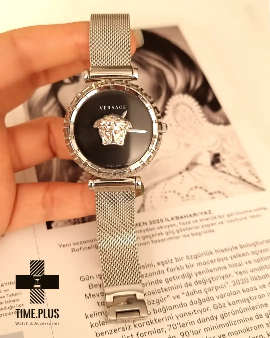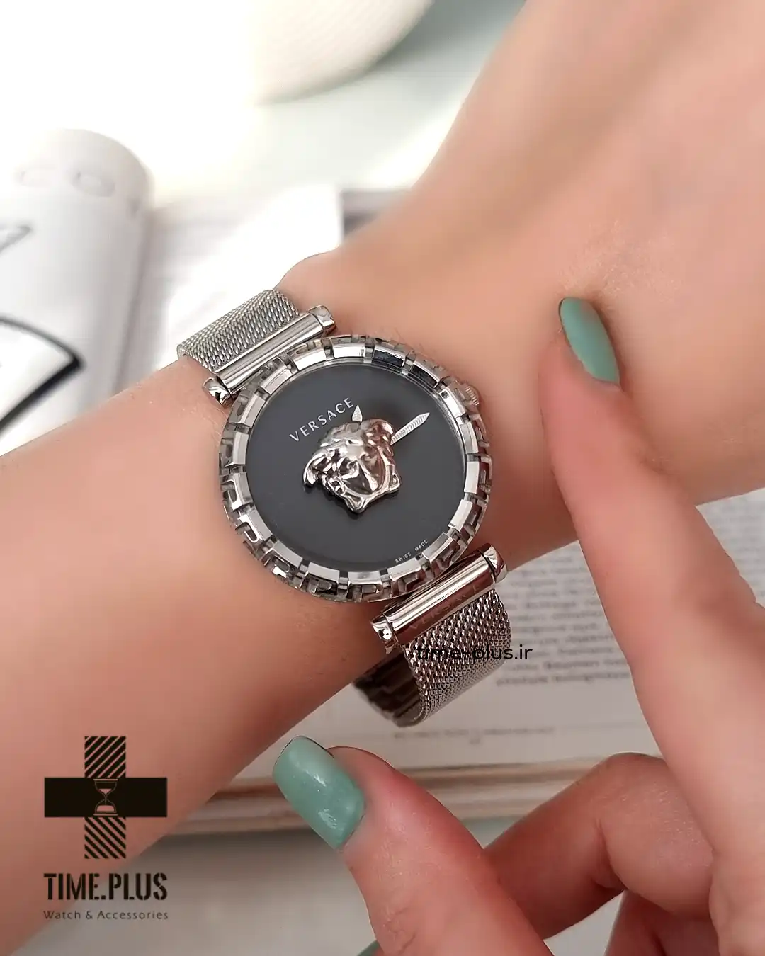 ساعت زنانه ورساچه پالازو صفحه مشکی با طراحی خاص و لوکس، از برند معروف ورساچه، یک انتخاب مناسب برای دوستداران مد است.