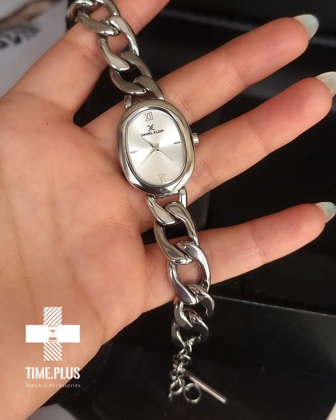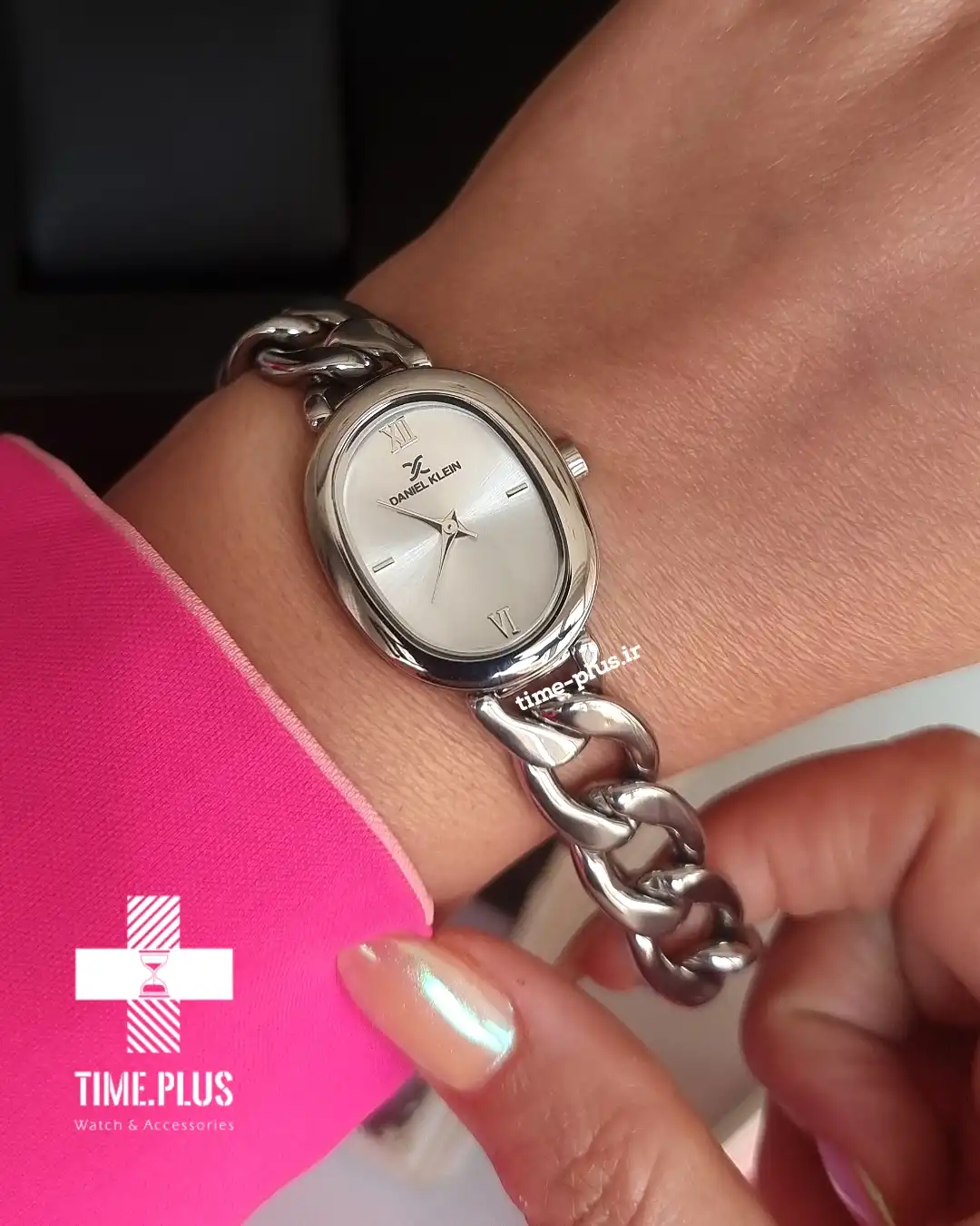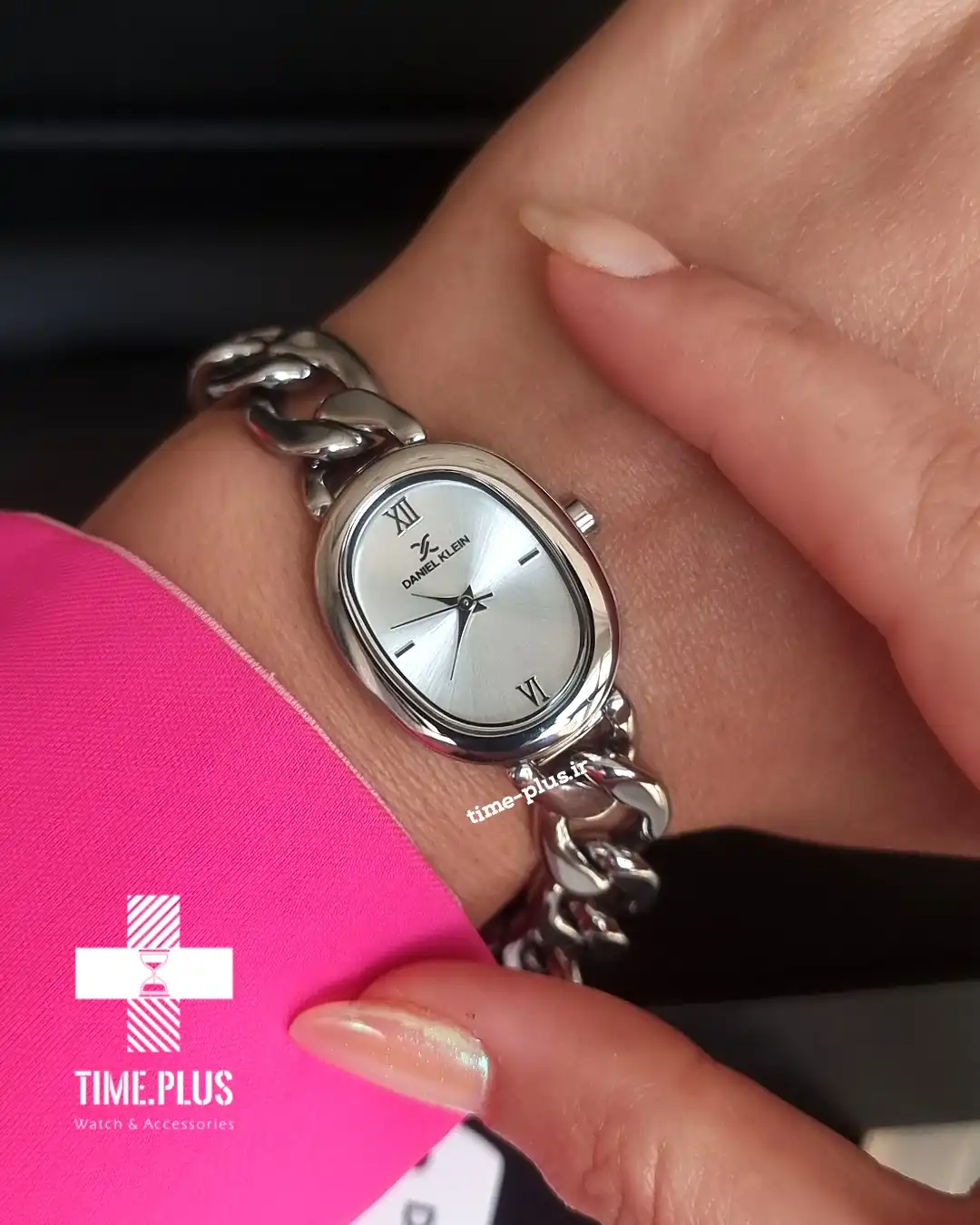 ساعت مچی زنانه دنیل کلین با طراحی مینیمال و صفحه نقرهای، زیبایی و ظرافت را به هر استایلی اضافه میکند.