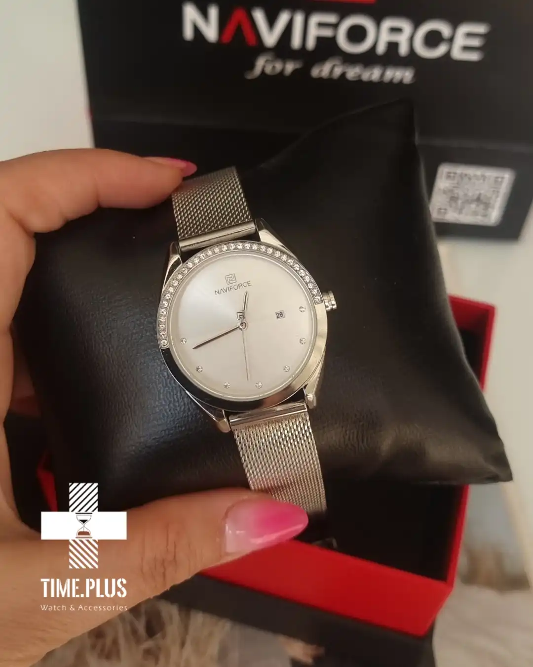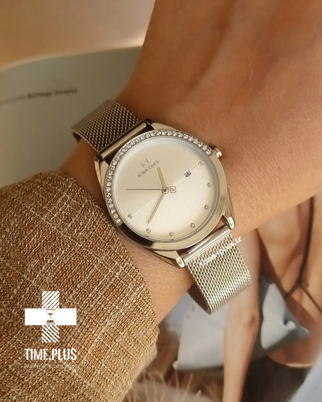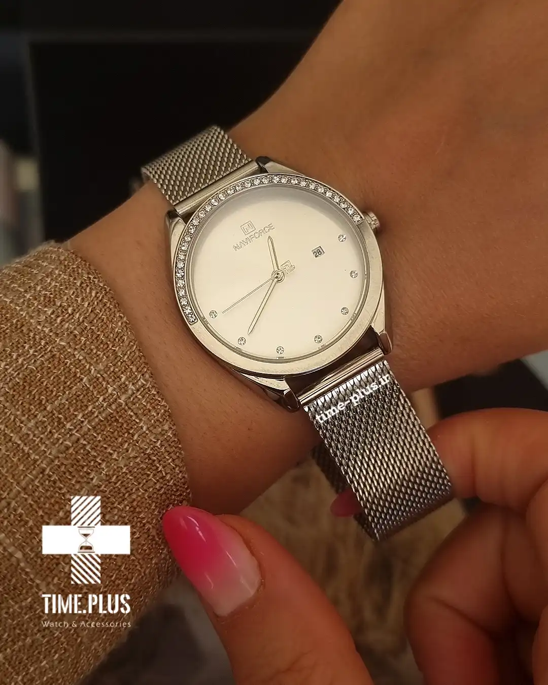 ساعت مچی زنانه NF5015 نیوی فورس ساعت مچی زنانه نیوی فورس مدل NF5015، ترکیبی از elegance و استحکام برای بانوان است. این ساعت با طرح حصیری و بند نقرهای، ظاهری شیک و دلنشین دارد.