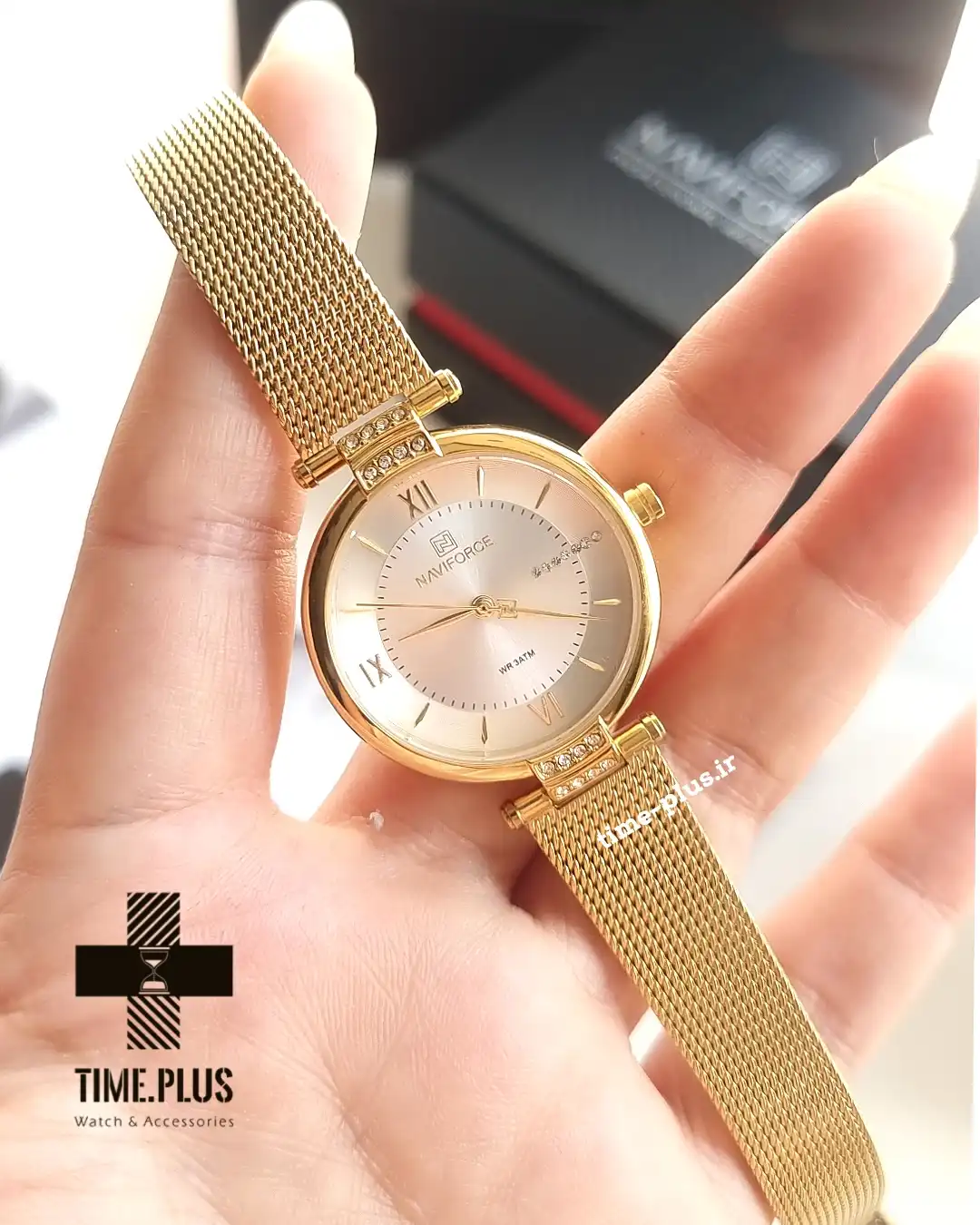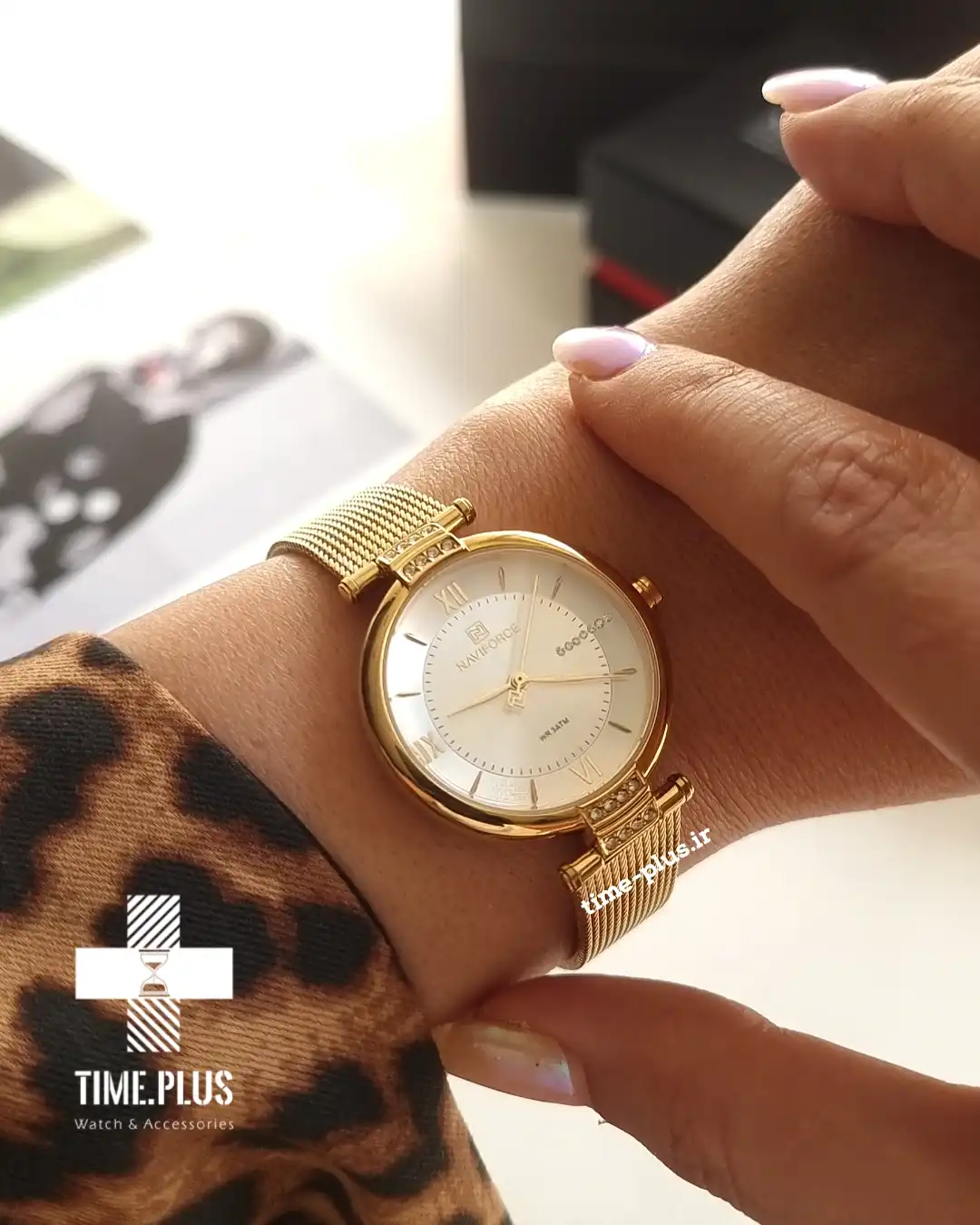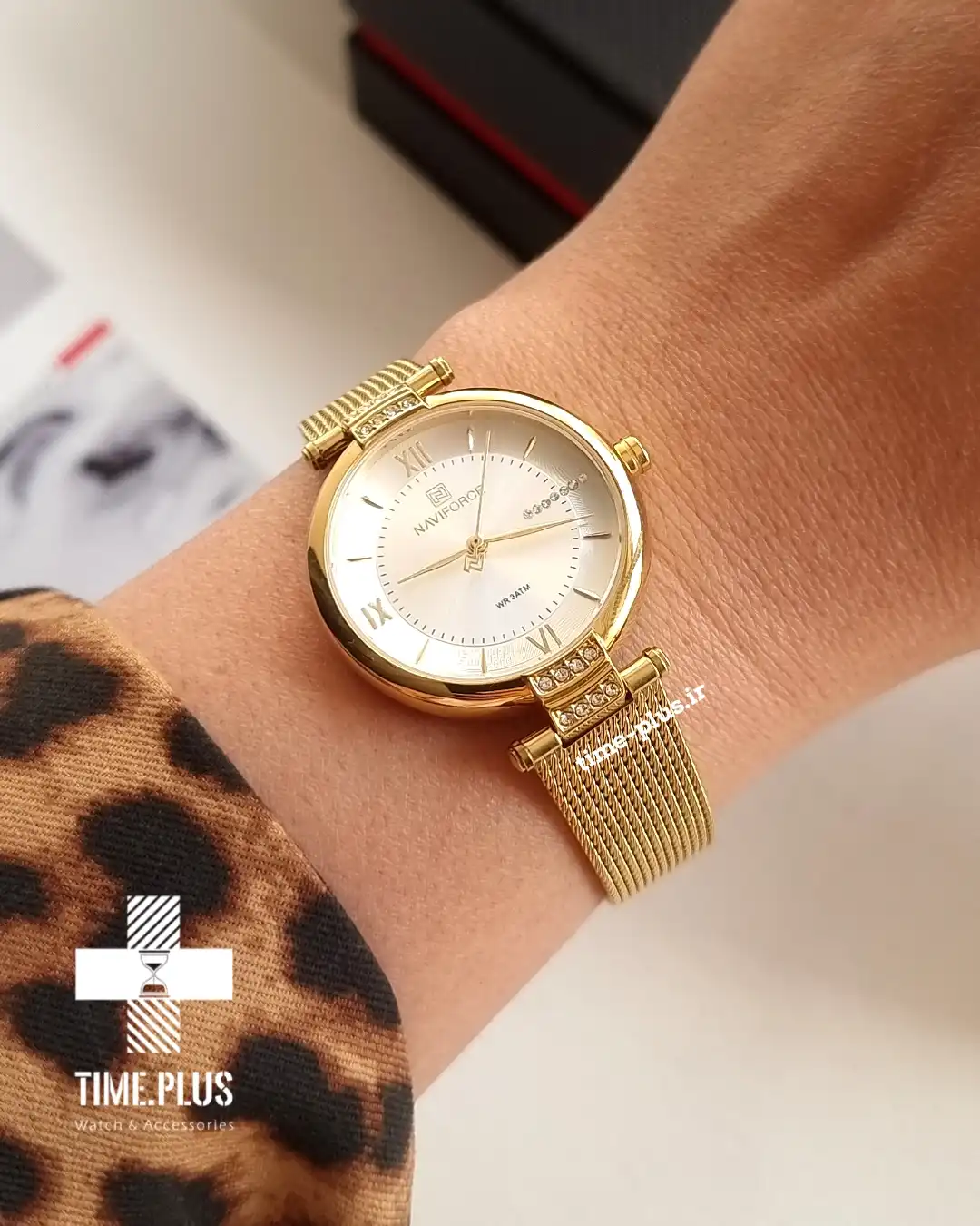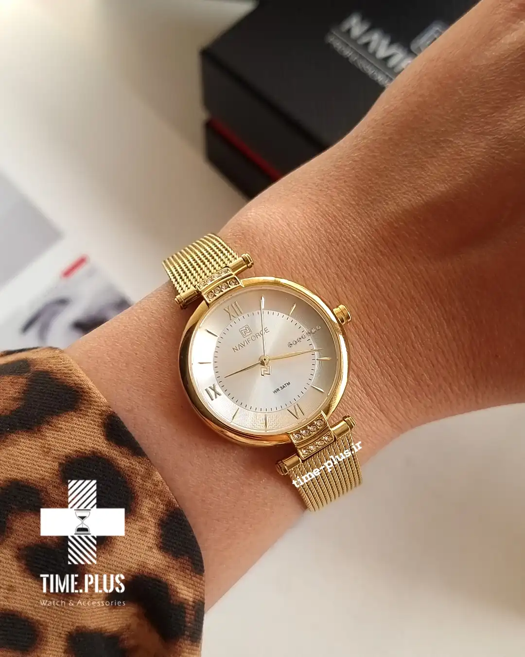 ساعت نیوی فورس مدل NF5019G، انتخابی شیک و مقاوم برای بانوان است که به خوبی با انواع لباسها هماهنگ میشود.