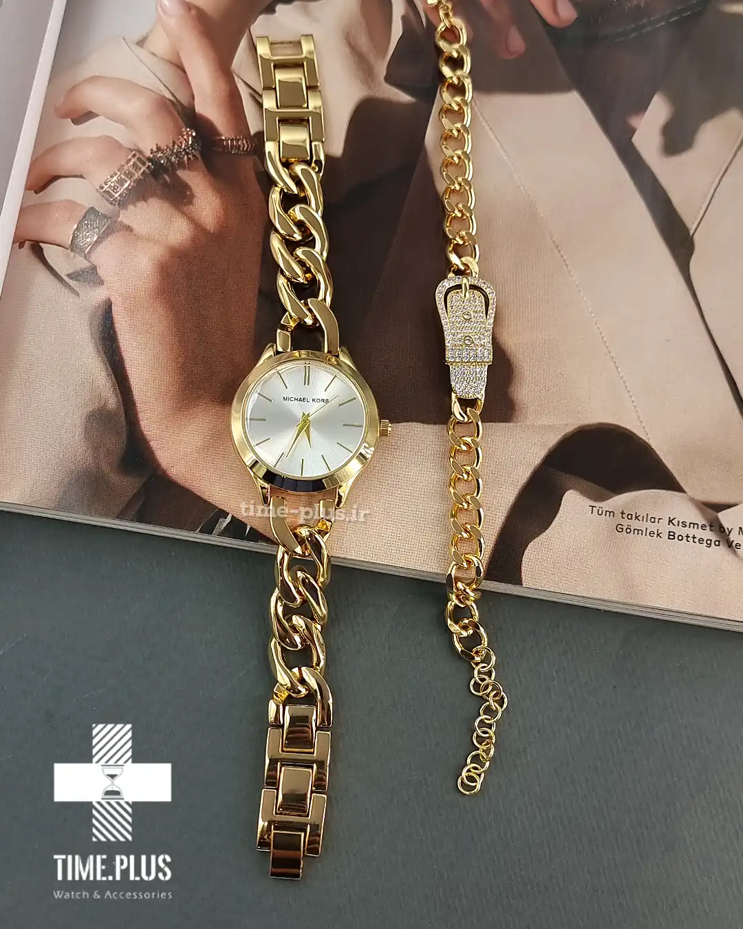 ساعت مچی زنانه مایکل کورس مدل MK_6028 زنجیری با طراحی شیک و مدرن، انتخابی عالی برای مهمانیها و روزمره است.