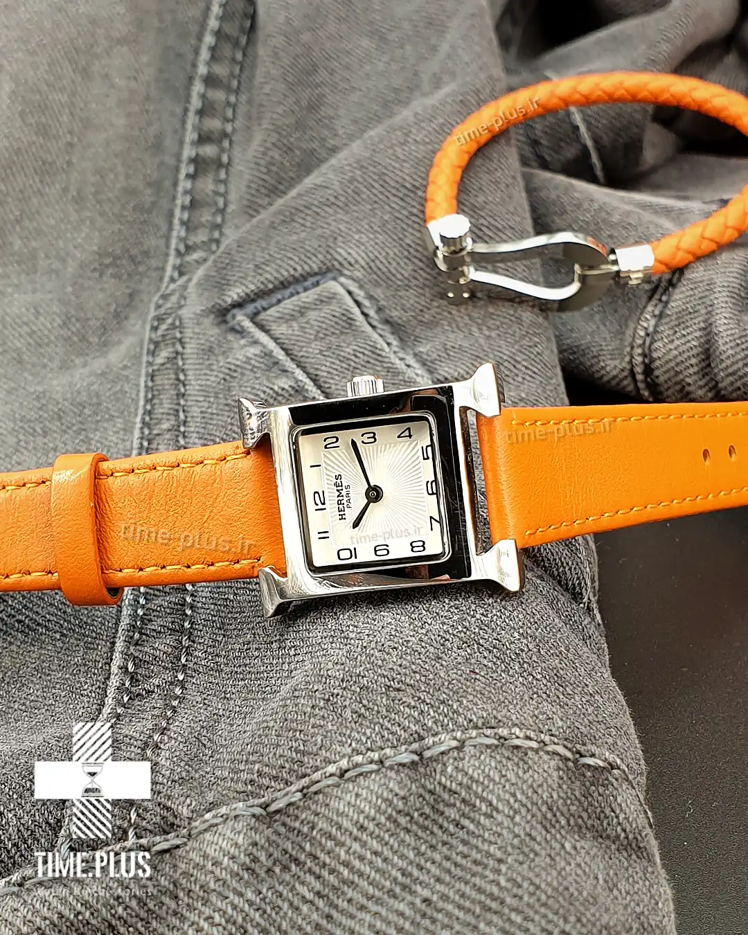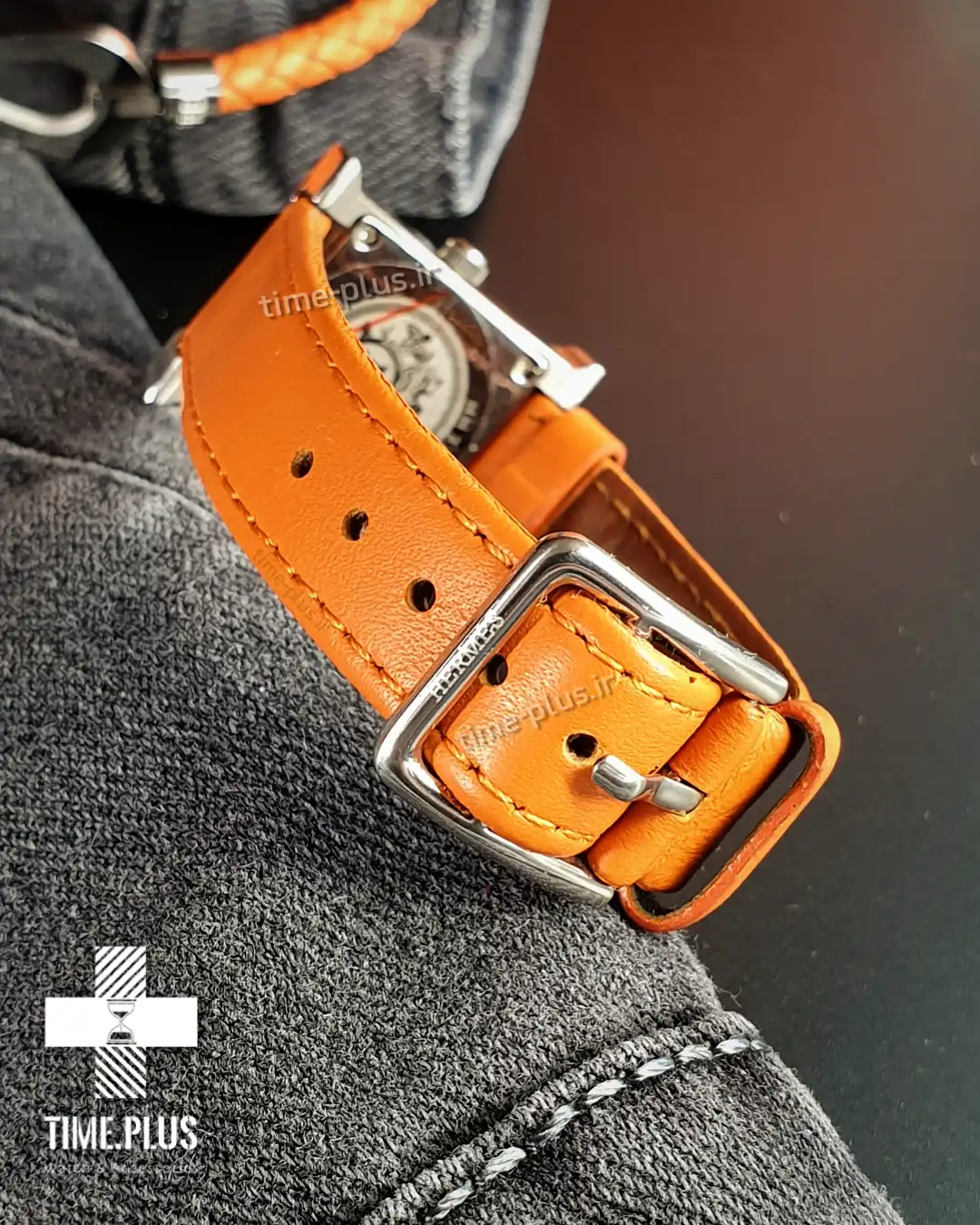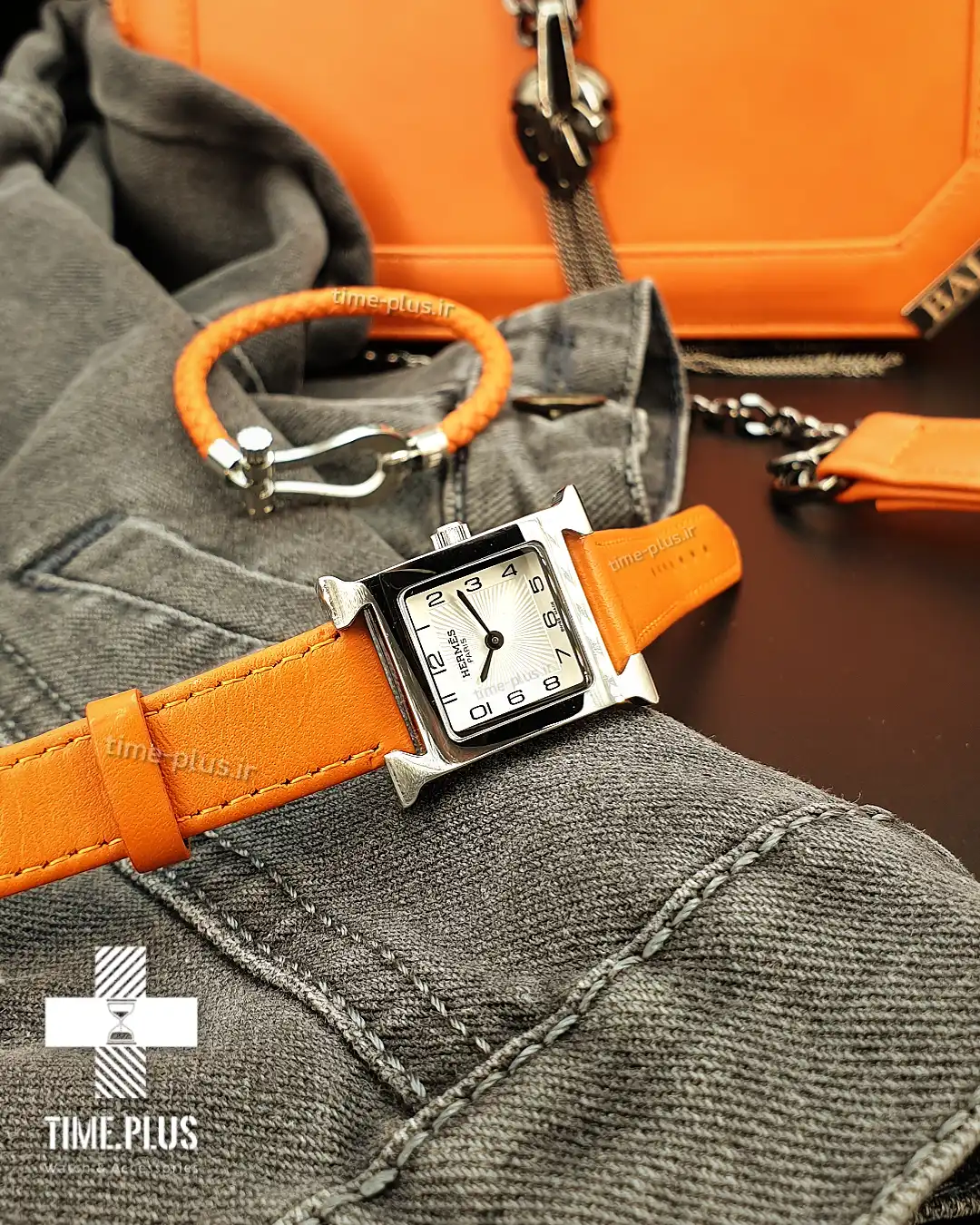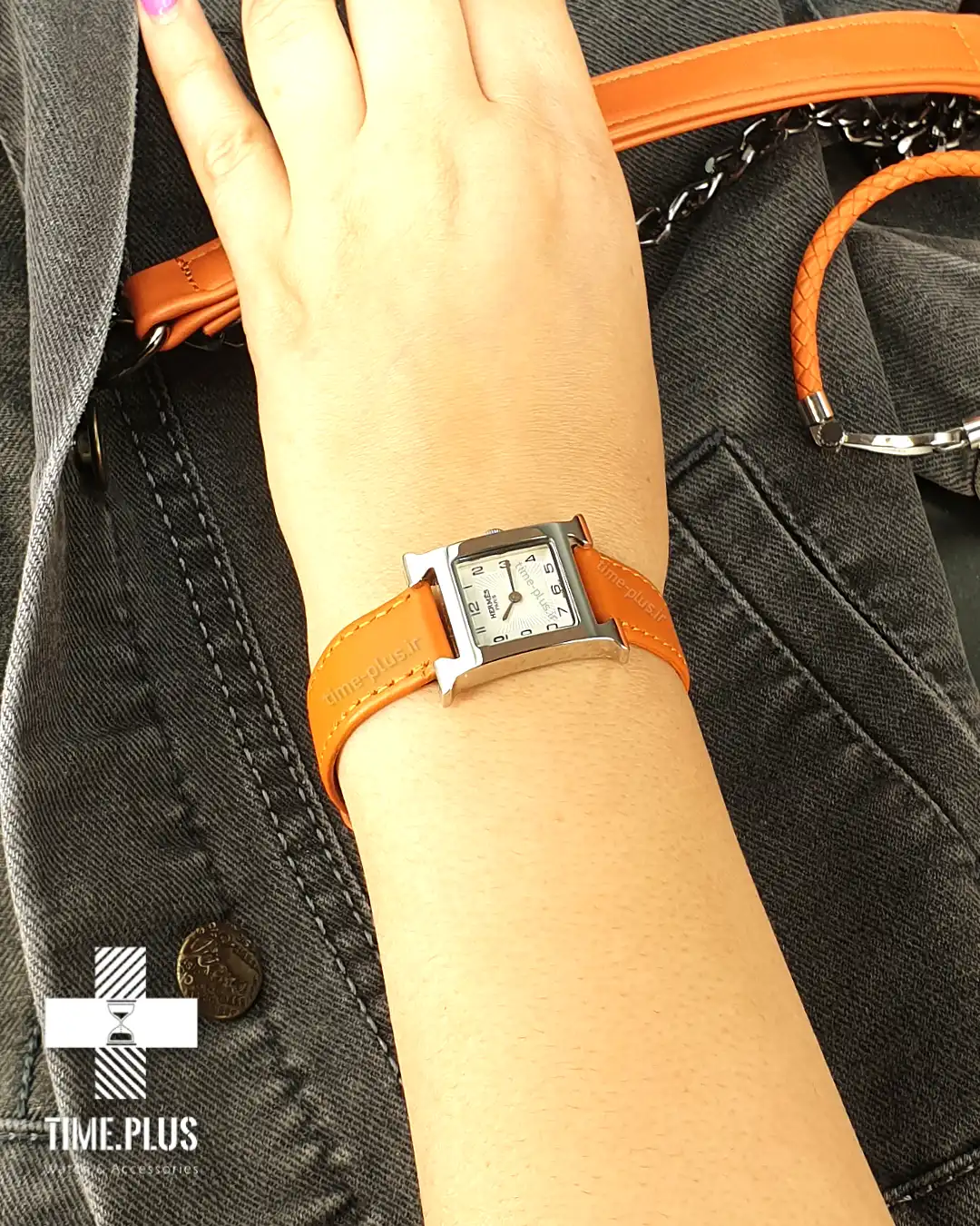 ساعت زنانه هرمس با طراحی منحصر به فرد، قاب نقرهای و بند نارنجی جذاب، مناسب برای کسانی است که به دنبال ترکیبی از زیبایی و کارایی هستند.