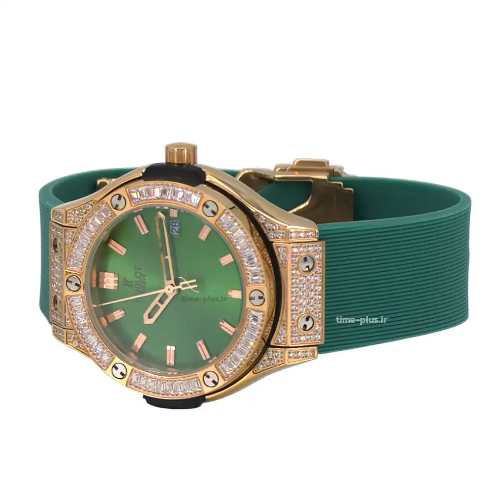 ساعت هوبلو با طراحی زیبا و نگینهای درخشان، انتخاب مناسبی برای خانمهای شیکپوش است.