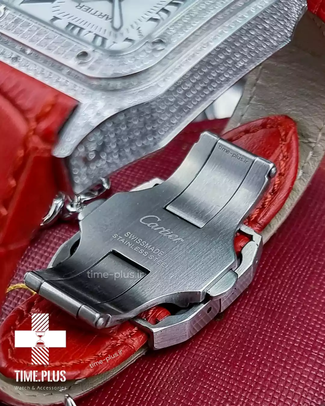 ساعت سانتوس ۱۰۰ از برند معروف کارتیه، ترکیبی از طراحی زیبا و کیفیت بالا با رنگ قرمز خاص است.