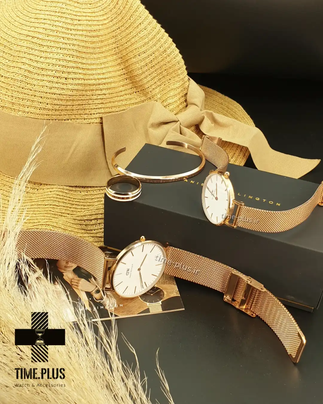 ساعت ست دنیل ولینگتون رزگلد بند حصیری