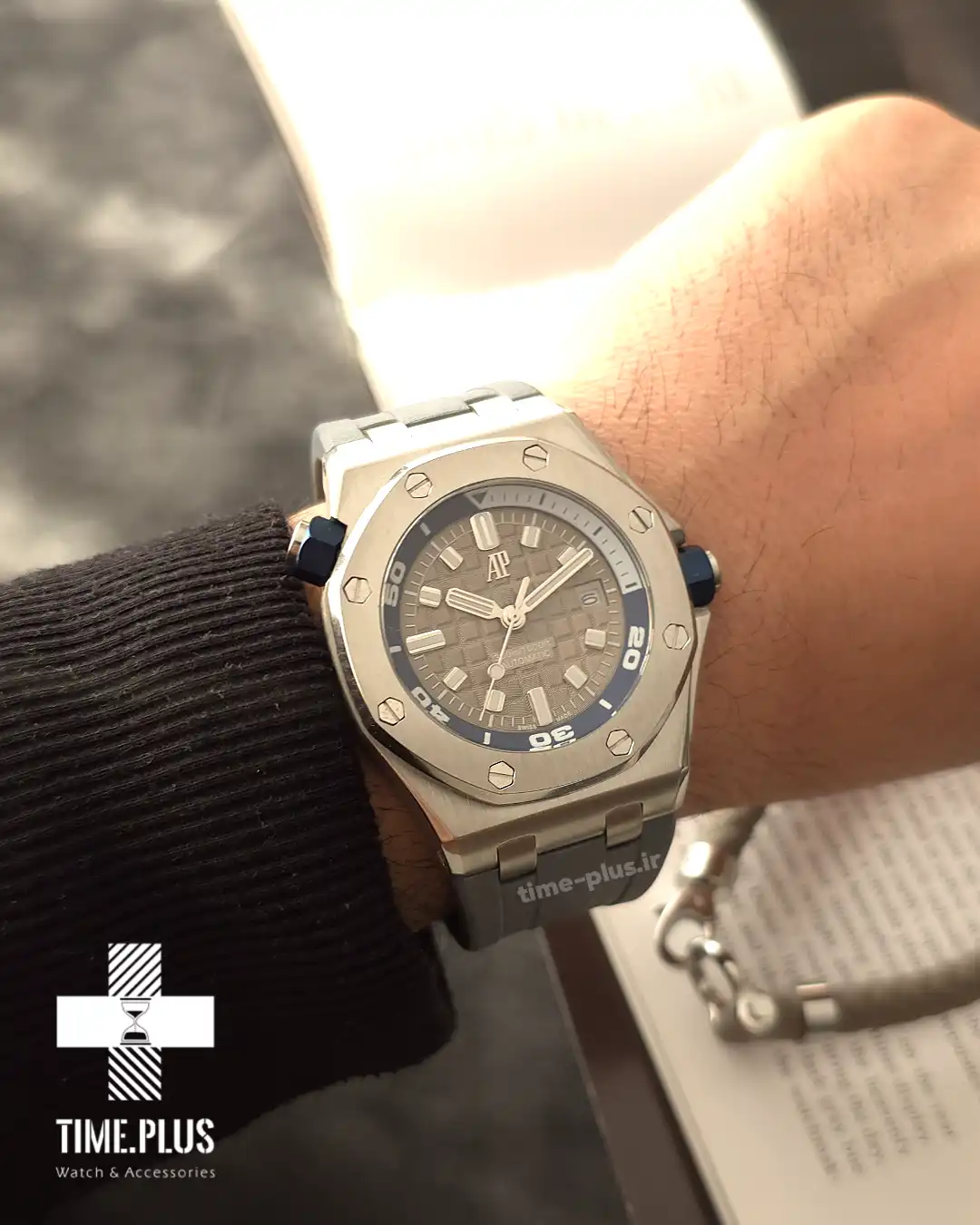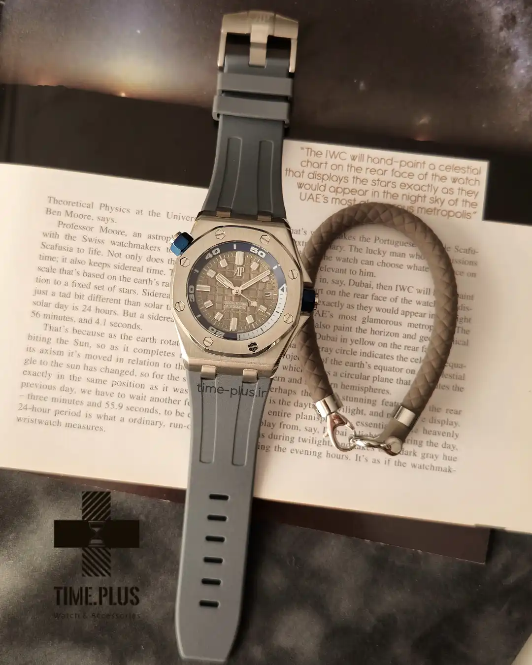 ساعت اودمار پیگه Royal oak offshore اتوماتیک بند رابر طوسی