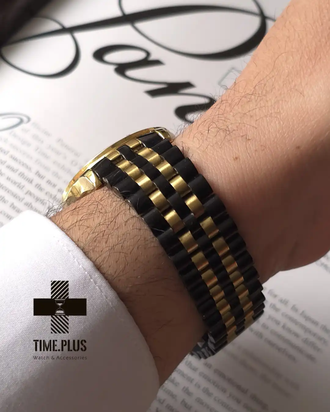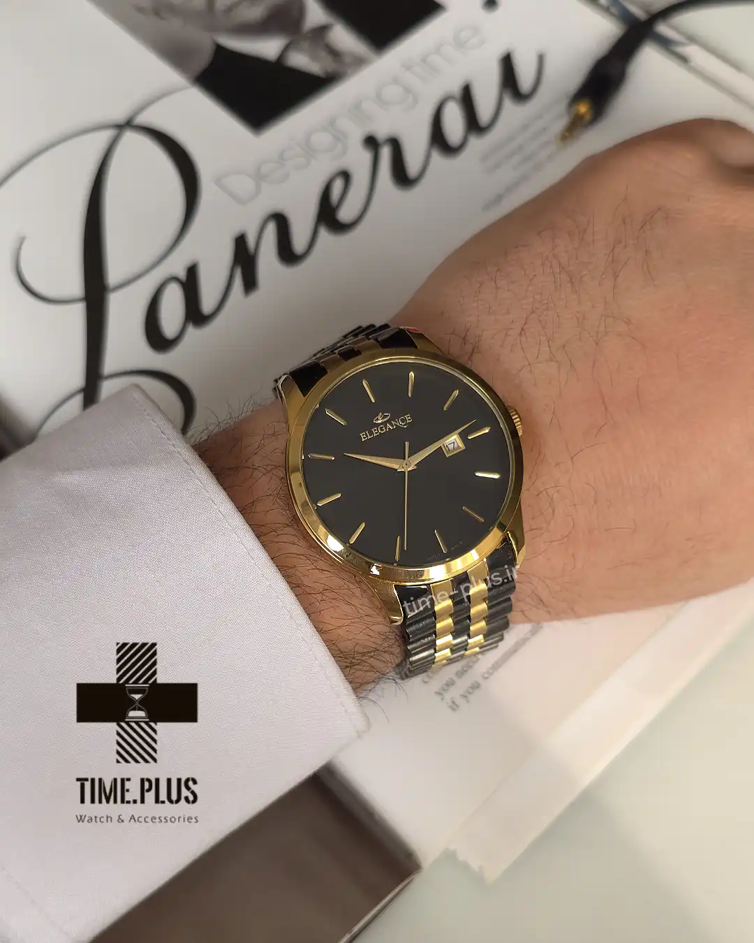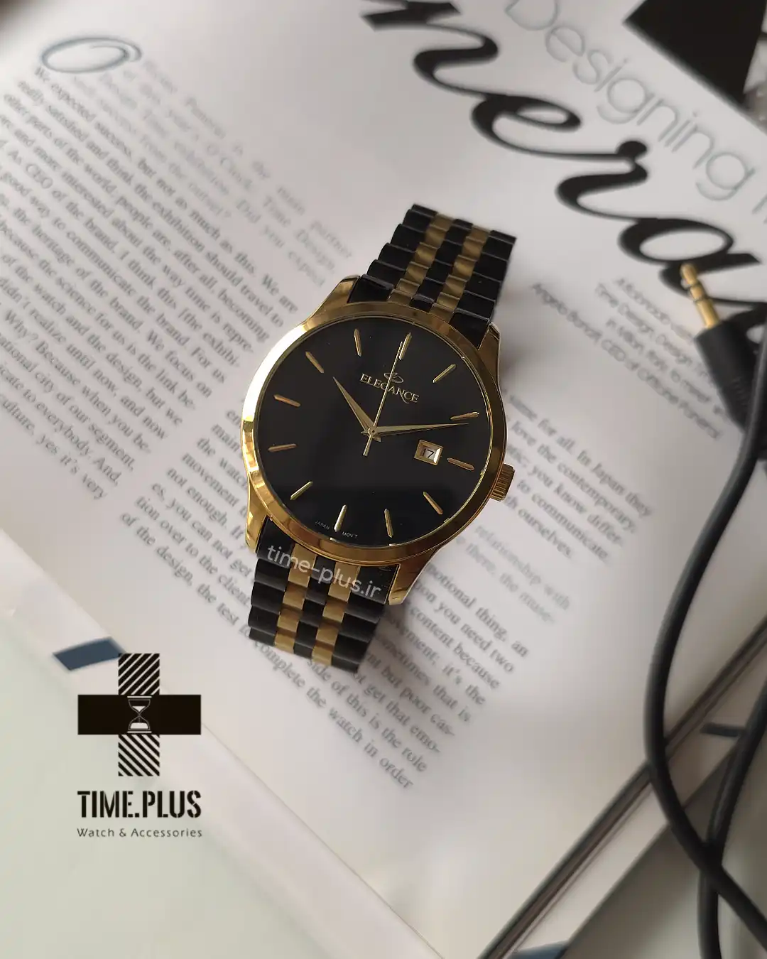 ساعت الگانس مردانه طلایی مشکی ساعت مچی مردانه الگانس میخواهم بهتون معرفی کنم ساعتی خاص و مناسب آقایونی هست که ساعت با بند فلزی رو میپسندن. به نظرم ساعت های الگانس همیشه جذاب و زیبا هستن، هیچ وقت تکراری نمیشن و با هر لباسی به راحتی ست میشن.