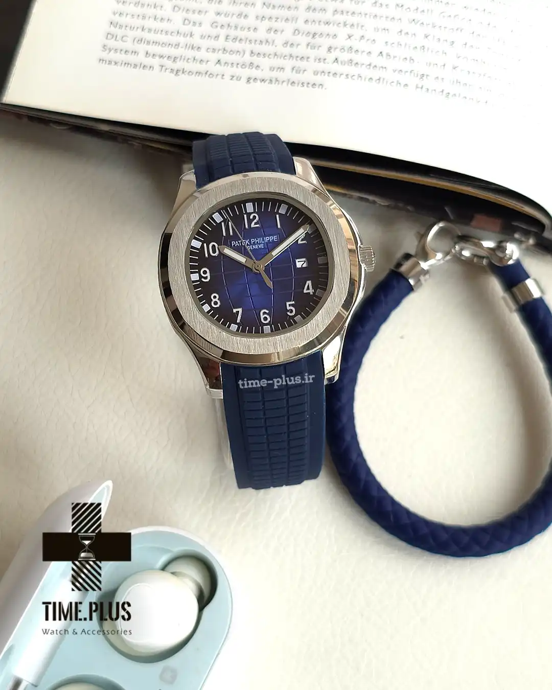ساعت پتک فیلیپ مردانه آکوانات بند رابر سرمه ای