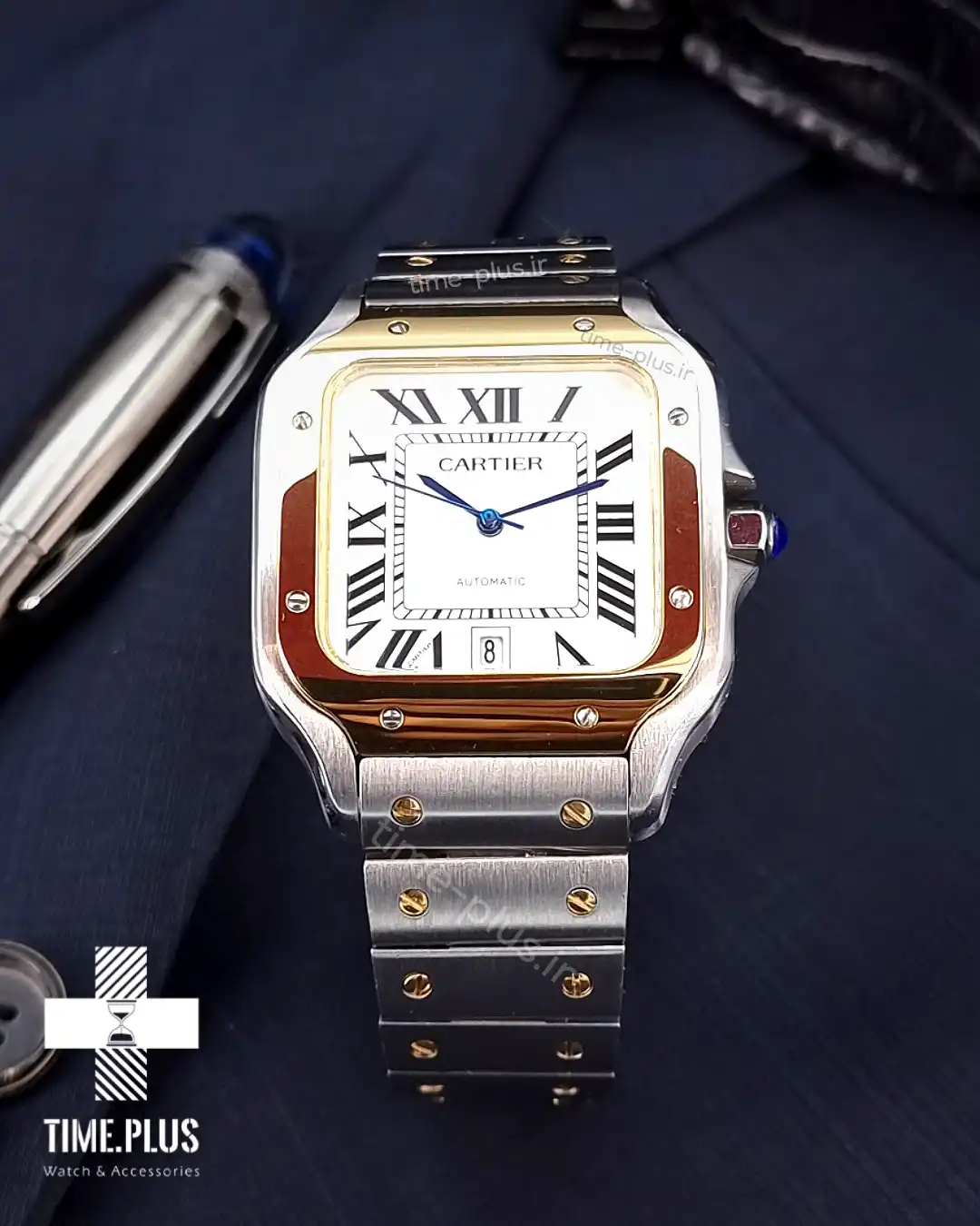 ساعت مچی مردانه سانتوس ۱۰۰ جدید کارتیه ساعت مردانه کارتیه سانتوس، یک مدل کلاسیک و مدرن از برند کارتیه است که جذابیت خاصی دارد. ویژگیهای کلیدی جنس بدنه: نقره ای و طلایی جنس شیشه: یاقوت سافایر ضد خش موتور: اتوماتیک ژاپن ابعاد صفحه ساعت: 39.