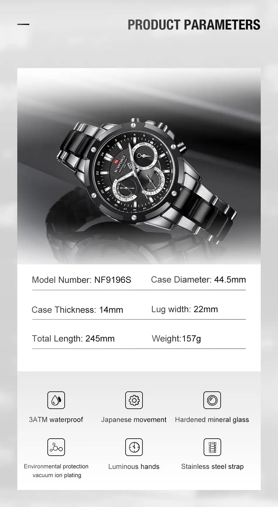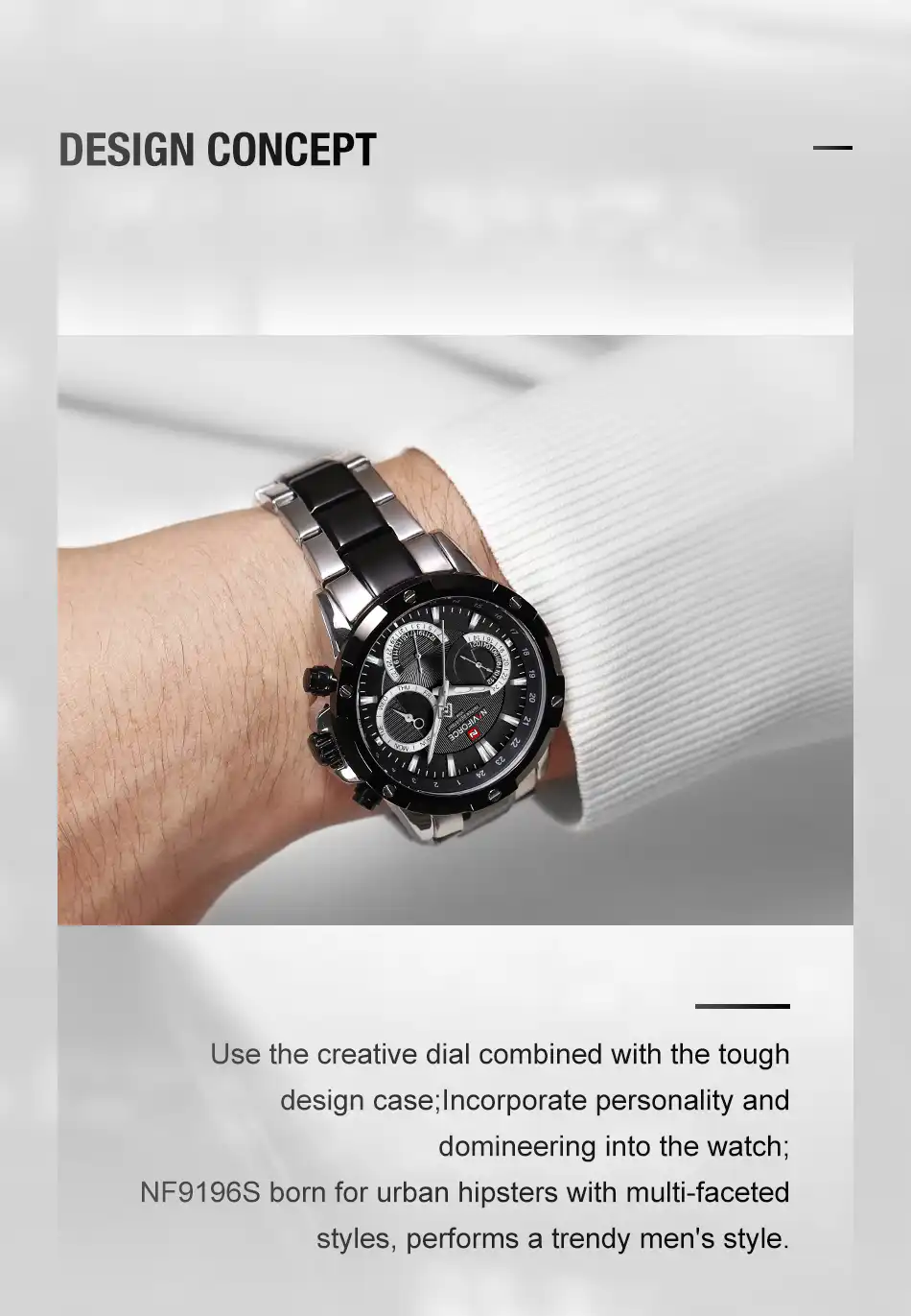 ساعت NF9196 نه تنها زیباست بلکه با کیفیت و دوام خود انتخابی بینظیر برای استفاده روزانه و هدیه دادن به دیگران است.