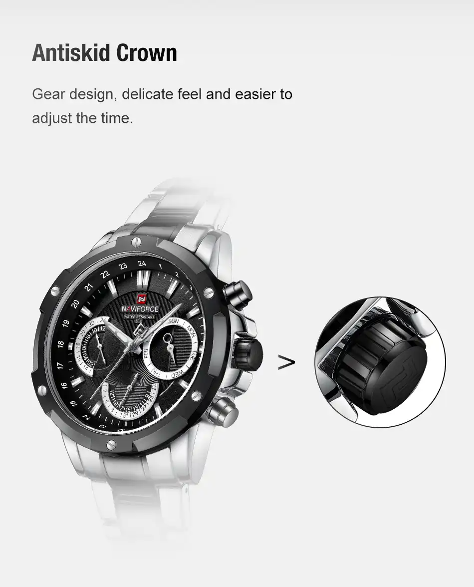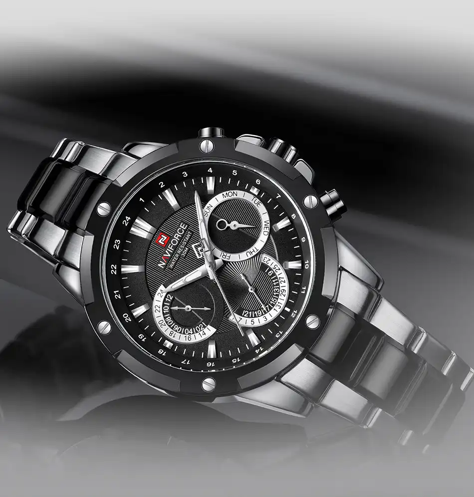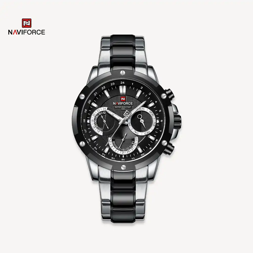 ساعت نیوی فورس مدل NF9196 با طراحی منحصر به فرد و کیفیت بالا، انتخابی مناسب برای آقایان جوان است.