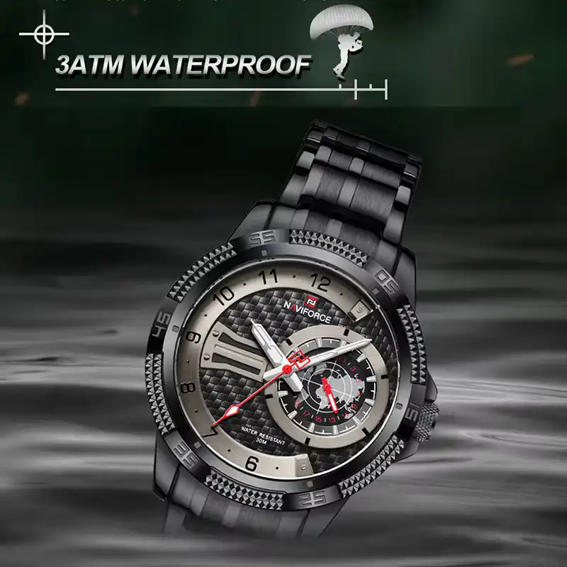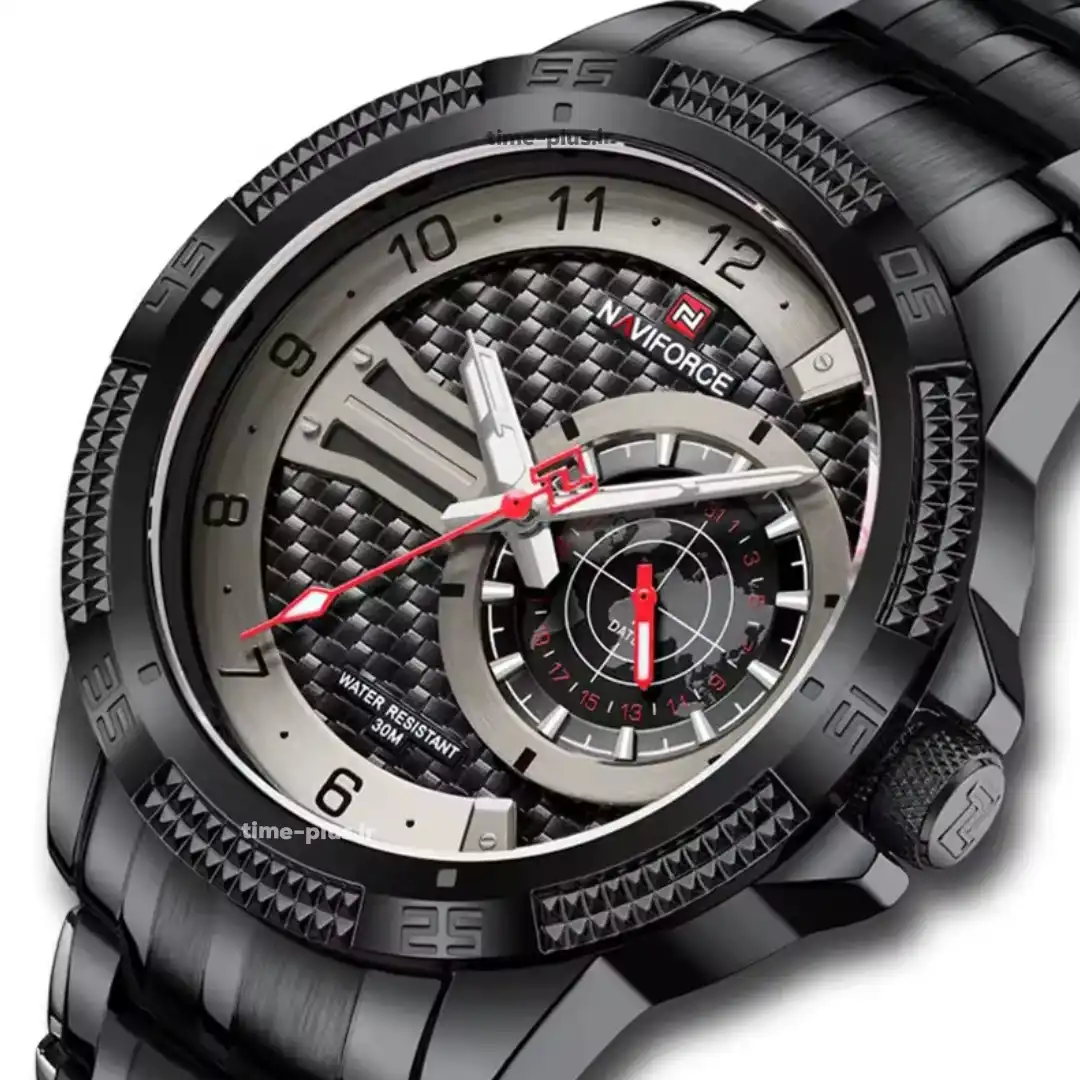 ساعت مچی مردانه NF9206 نیوی فورس این ساعت مردانه با طراحی تمام مشکی و جزئیات دقیق، انتخابی ایدهآل برای آقایان با سلیقه است. ساعت NF9206 نه تنها قدرت را نمایش میدهد بلکه به استایل شما جذابیت خاصی میبخشد.