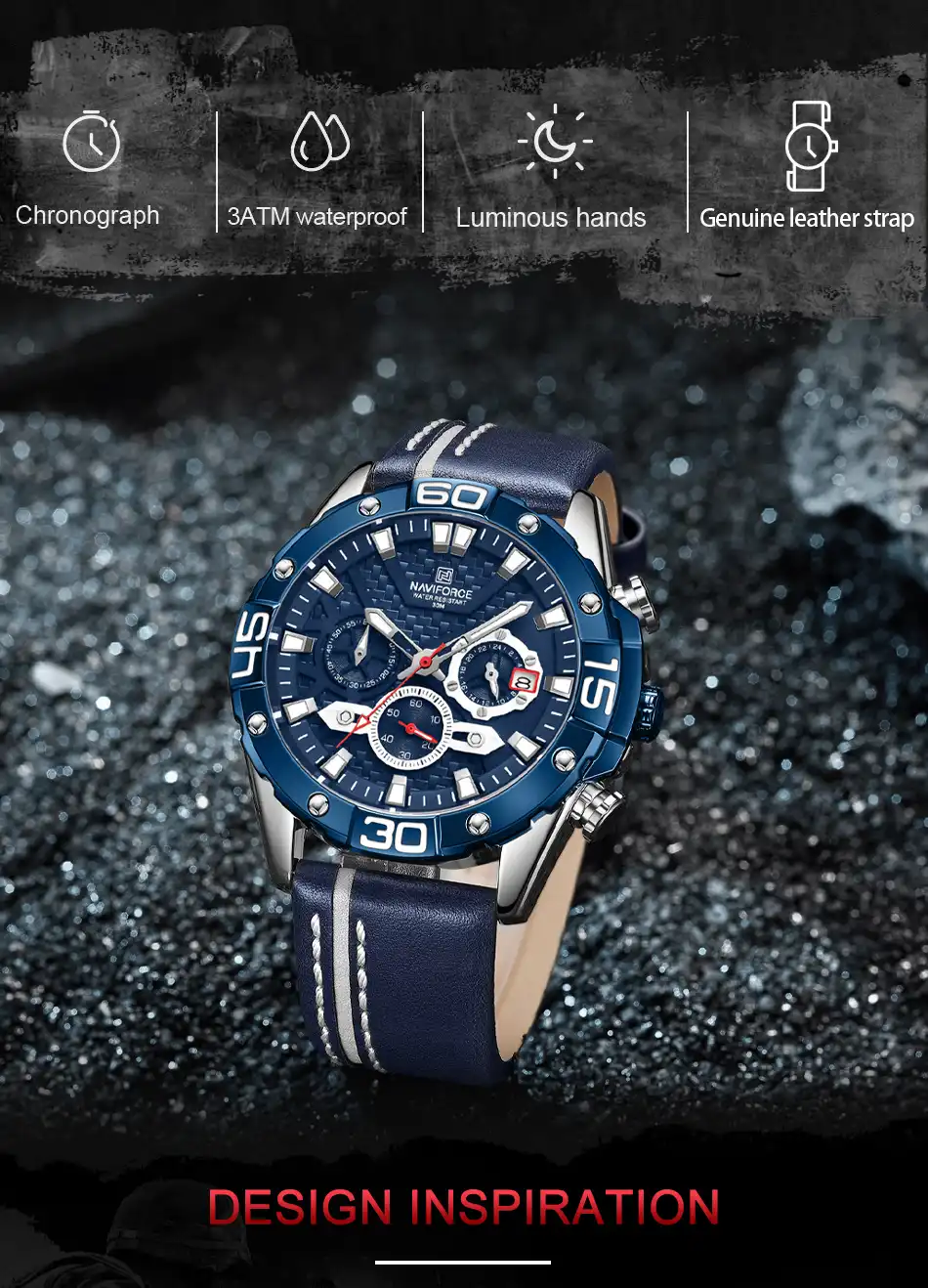ساعت مچی مردانه نیوی فورس تلفیقی از طراحی شیک و عملکرد چندمنظوره است که برای موقعیت های تجاری و تفریحی مناسب است.