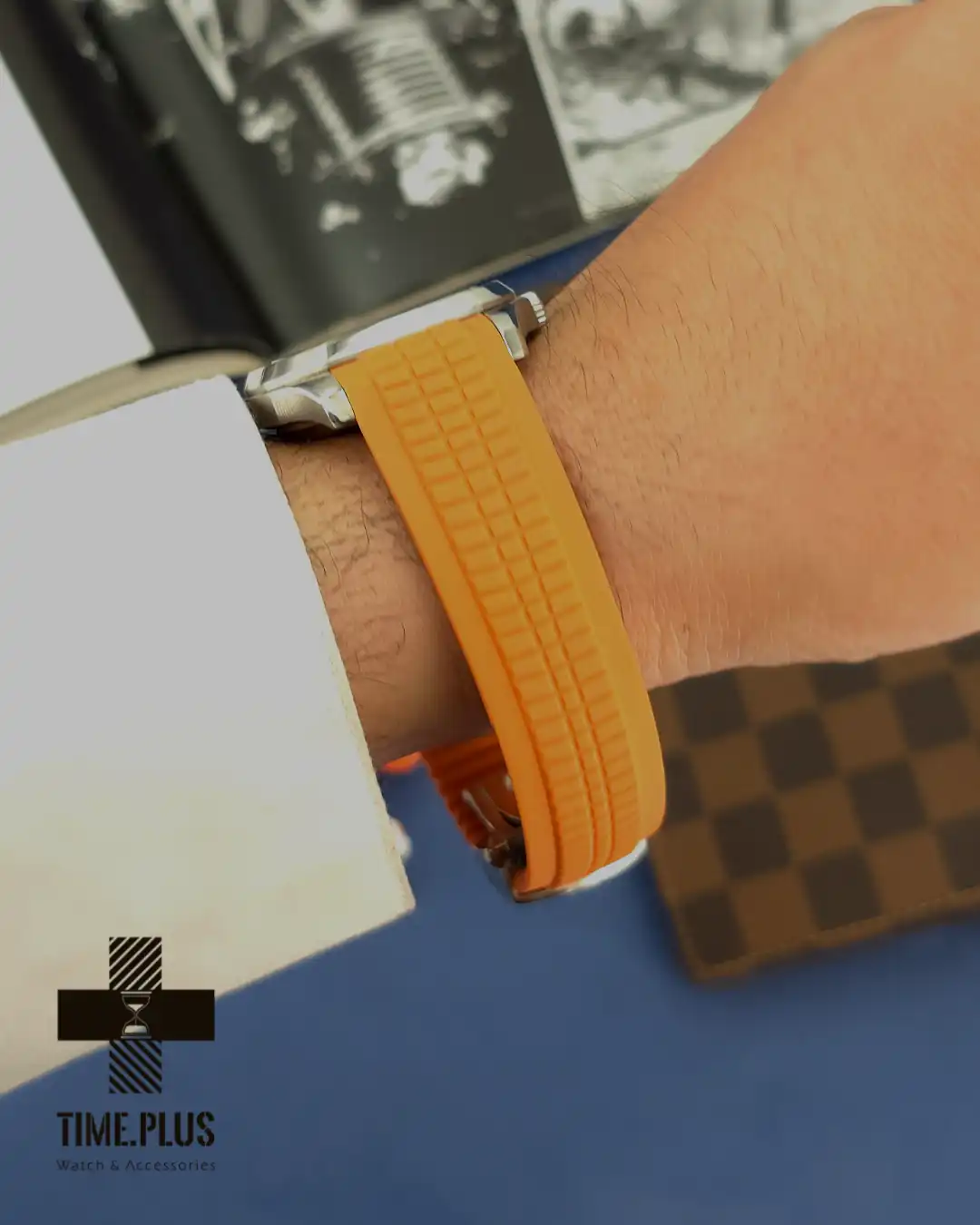 بدنه آن از استیل با کیفیت و با دوام ۳۱۶ ساخته شده و ثبات رنگ و آنتی آلرژی از خصوصیات این متریال میباشد. بند این ساعت پتک فیلیپ نیز از رابر ضد آلرژی و مرغوب ساخته شده که با رنگ و طراحی خاصی که دارد زیبایی این ساعت را دو چندان کرده است.